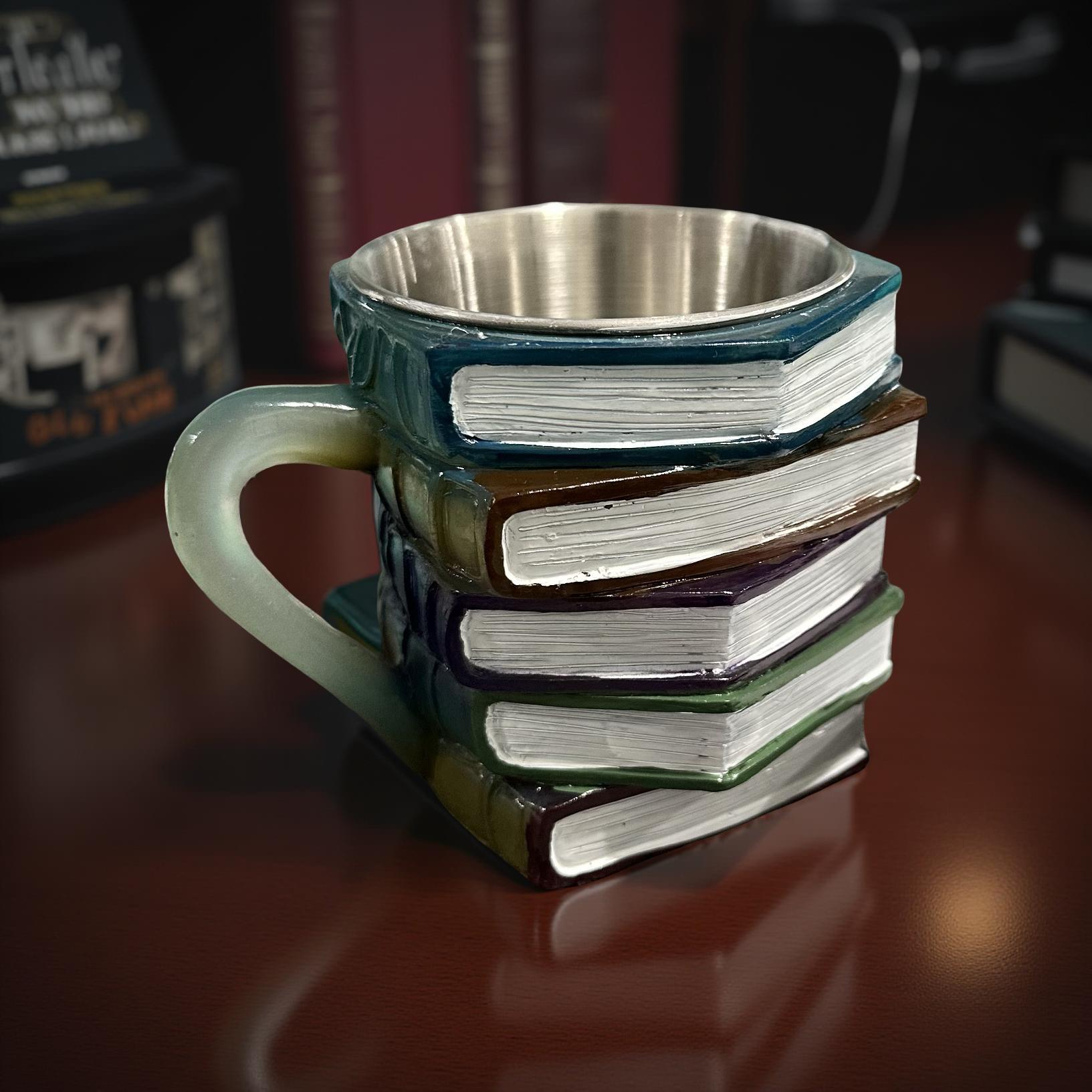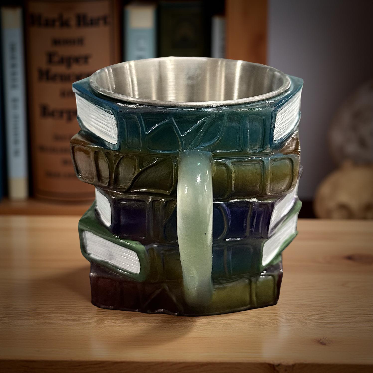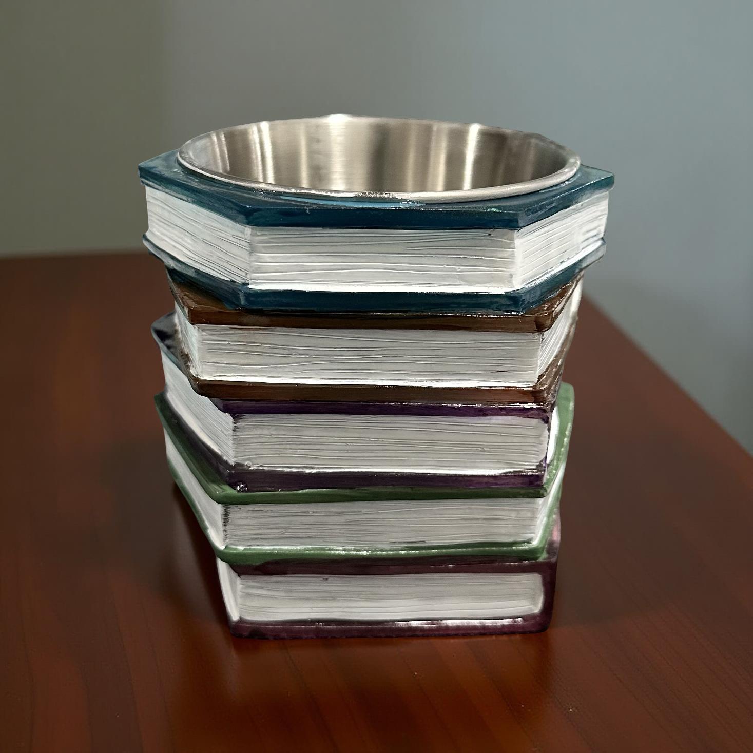Handcrafted and painted with a vibrant 3D resin book stack on the exterior