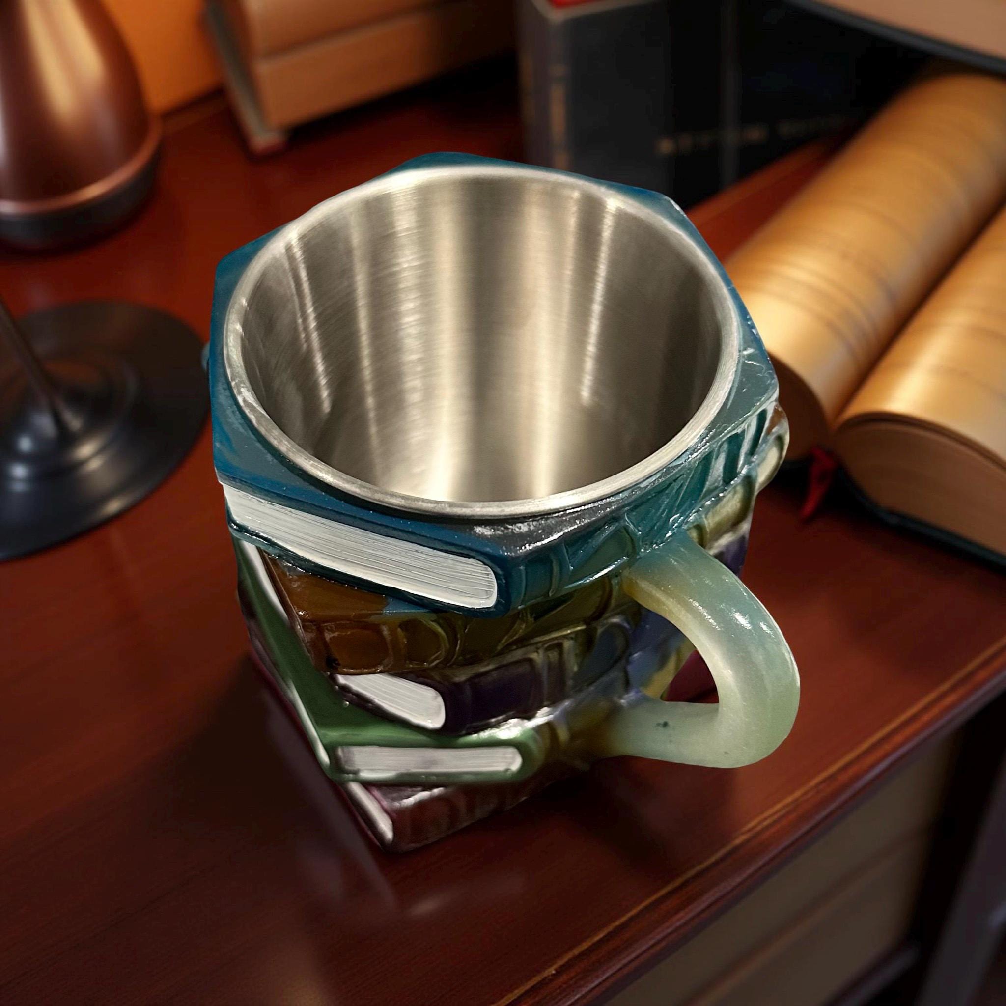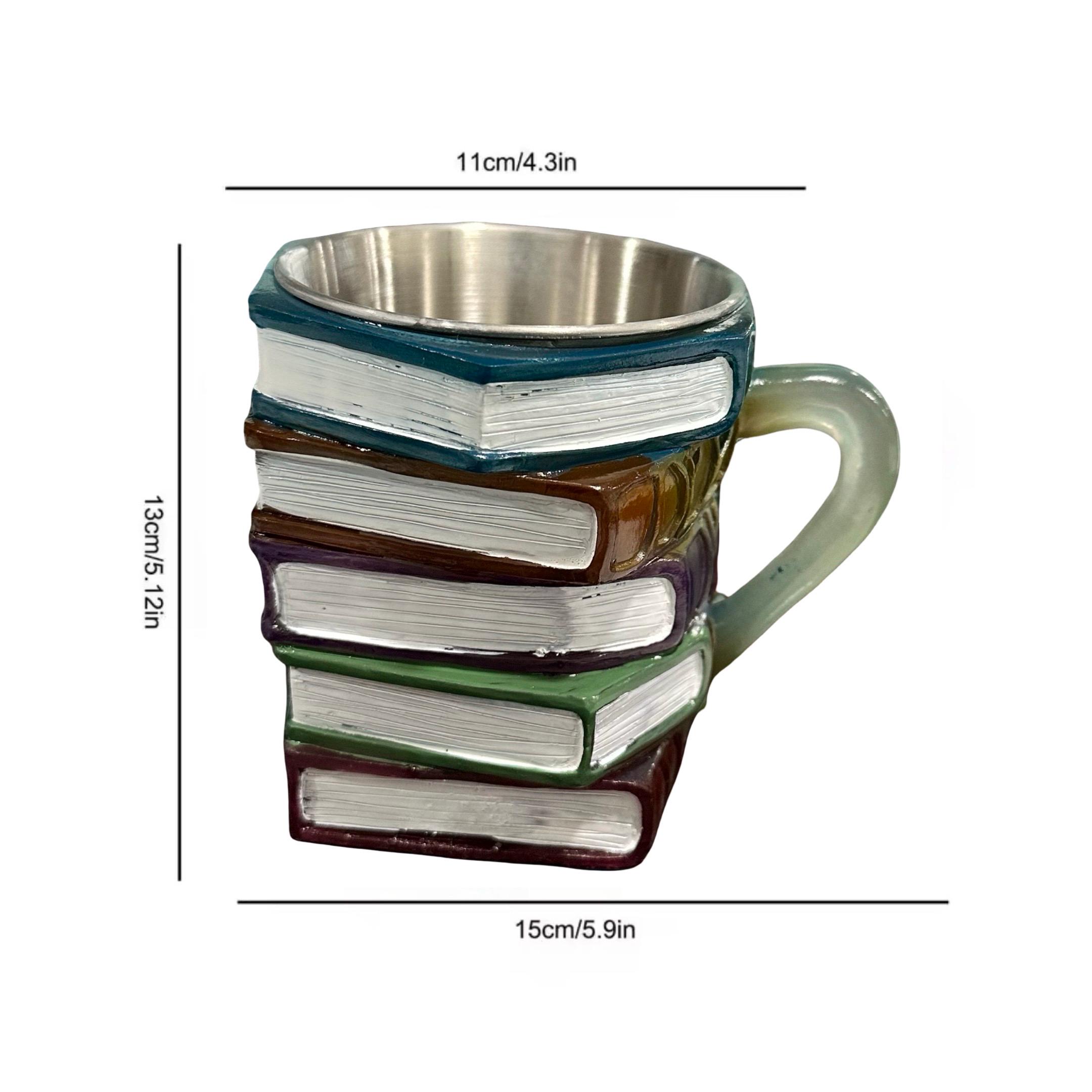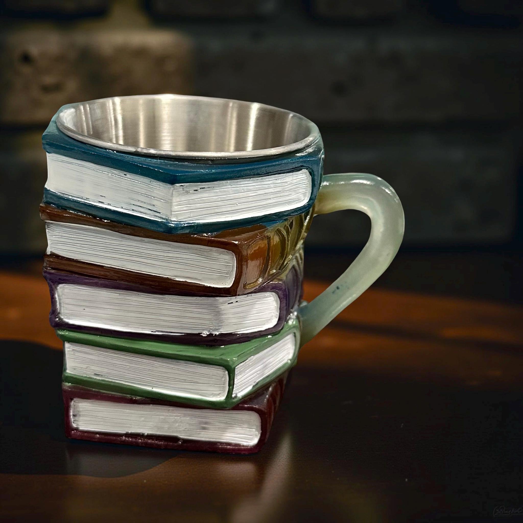 This handcrafted painted book mug combines whimsy with craftsmanship. Featuring a vibrant 3D resin stack of colorful books, each mug is carefully handmade, making every piece unique. The 11oz capacity is perfect for a comforting cup of coffee or tea during a busy day of teaching, studying, reading, or shelving books.