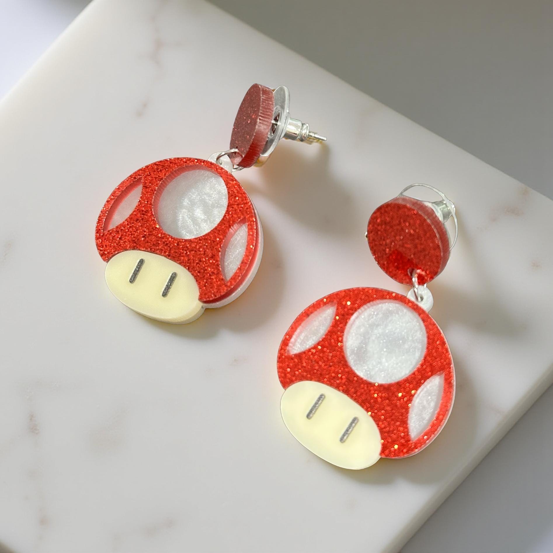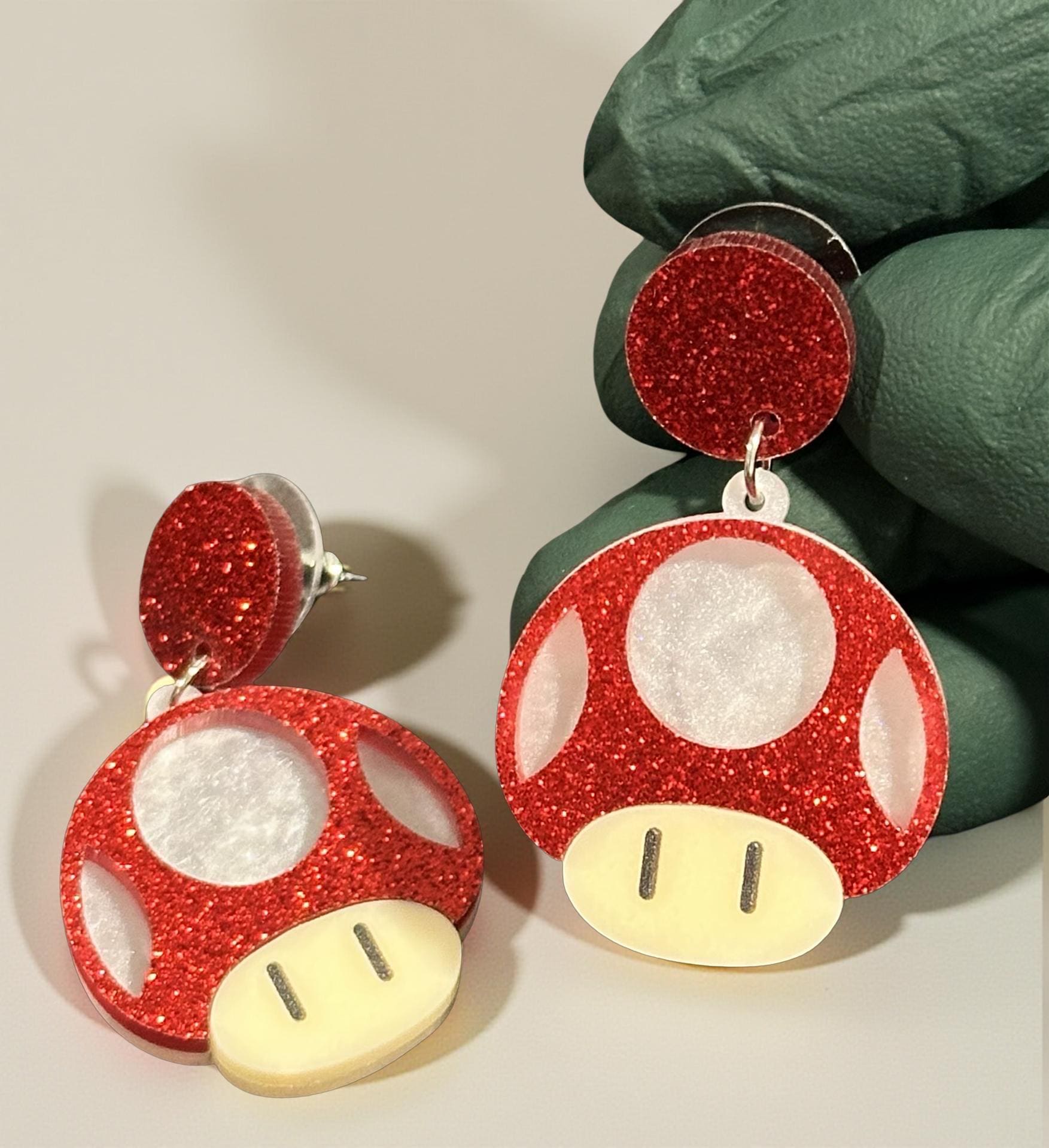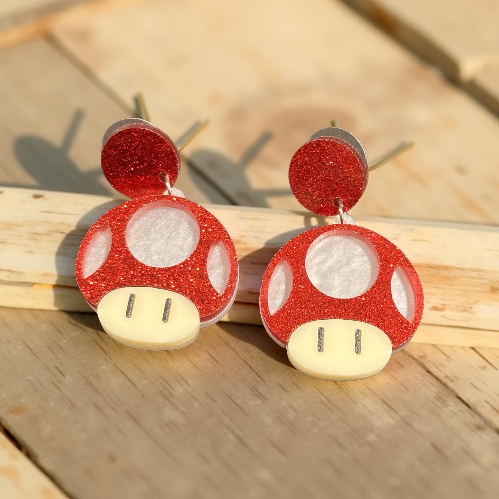 Classic, charming drop mushroom earrings that blend playful anime style with lightweight comfort. Made from acrylic with durable titanium steel accents, this unisex pair suits women, men, and kids for everyday wear or cosplay.