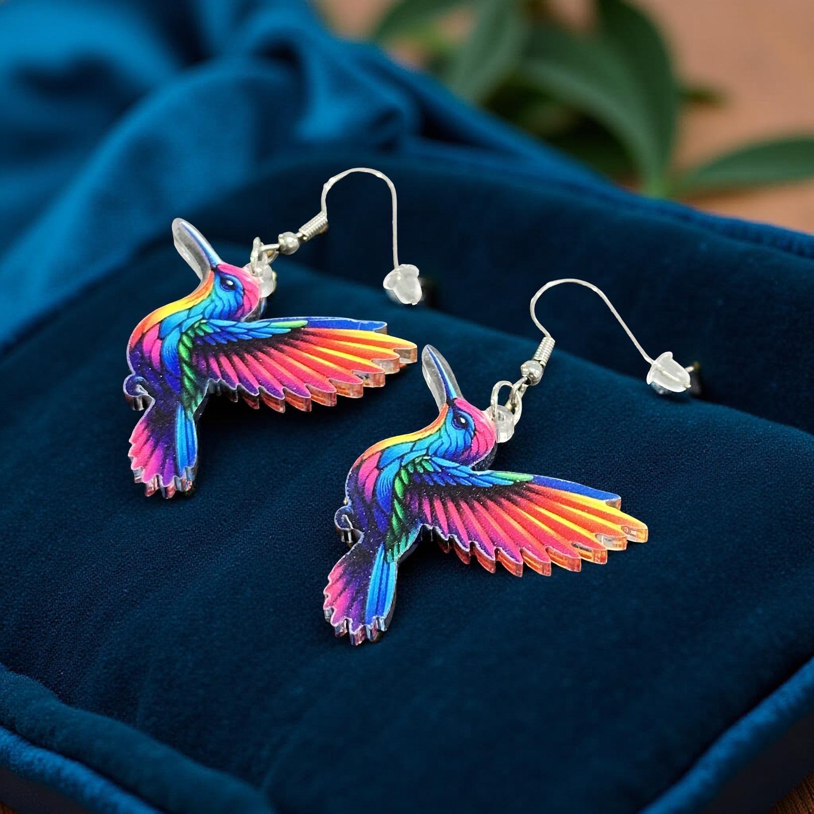 Hummingbird Dangle Earrings, Colorful Acrylic, 1.26 Inches, Bohemian Style