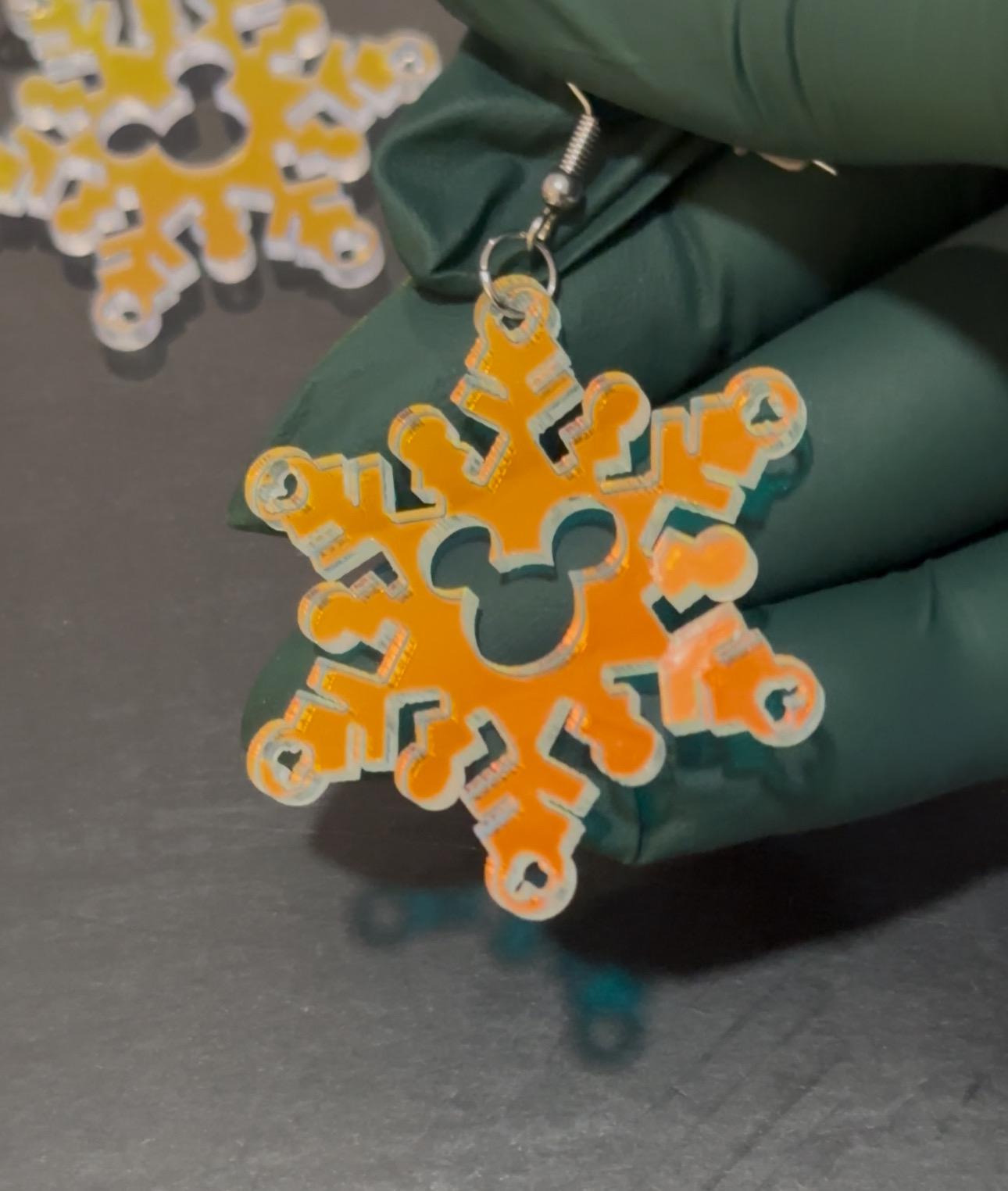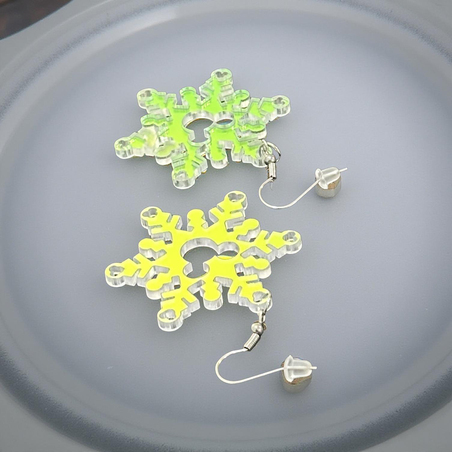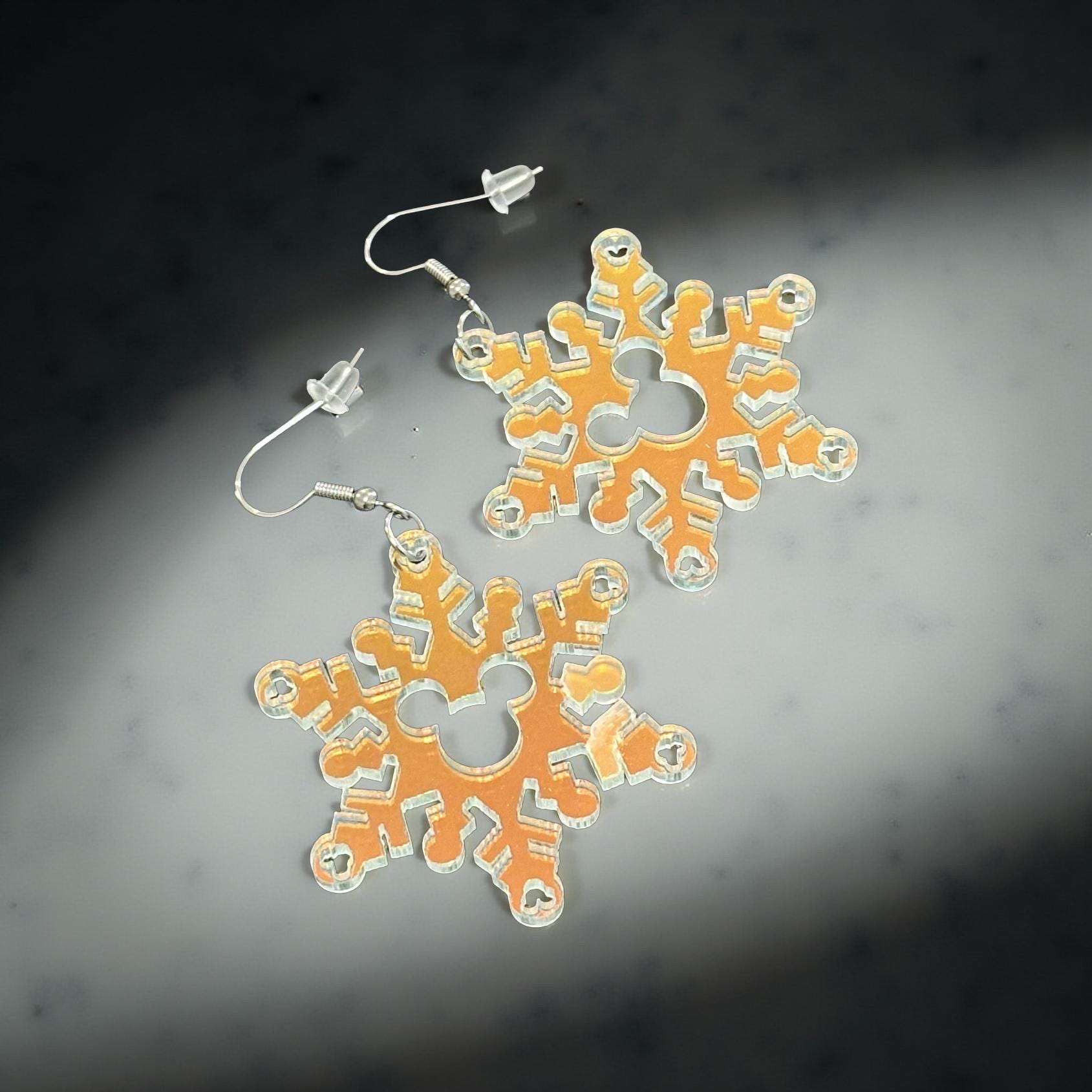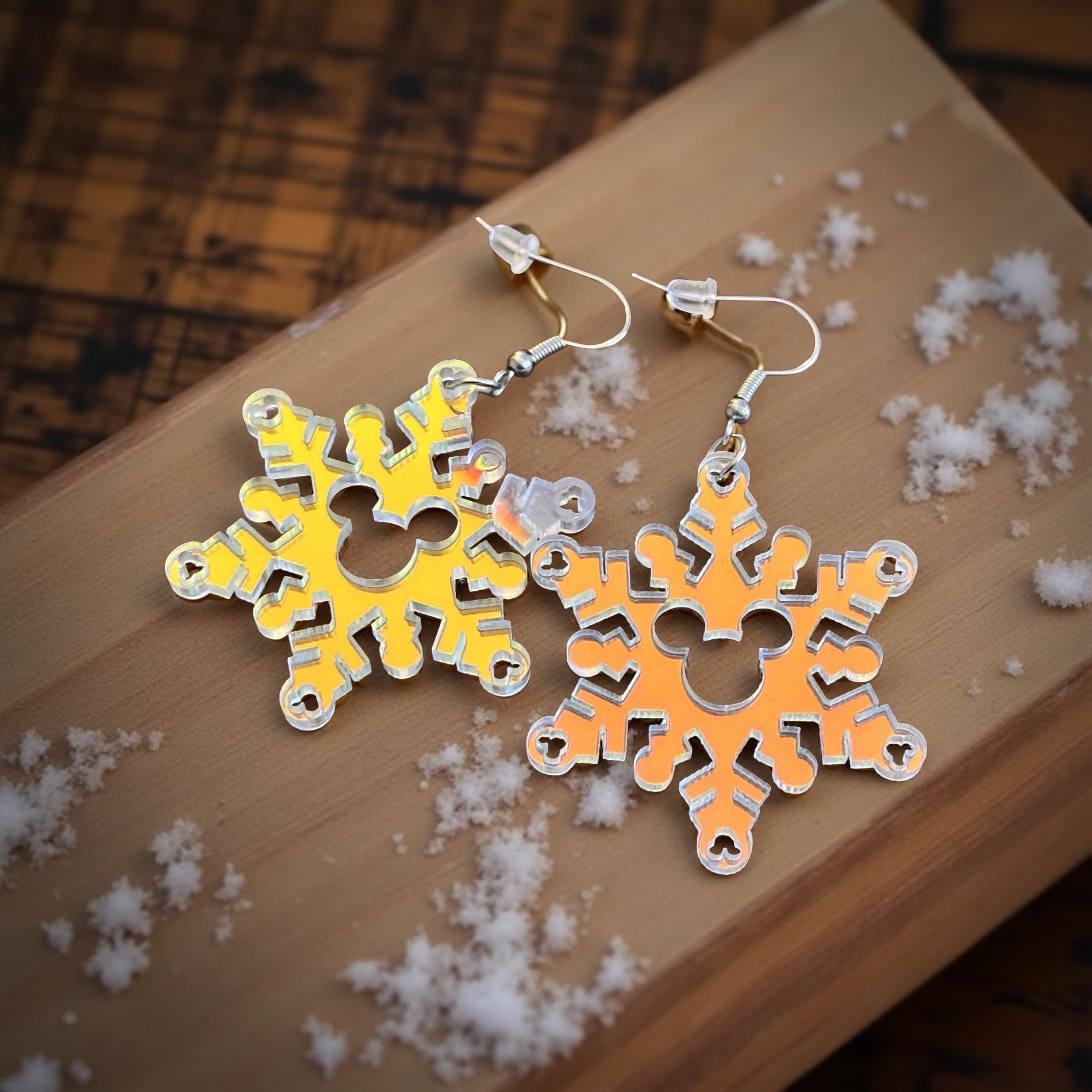 Mouse Snowflake Drops | 1 pair Drop laser Iridescent snowflake acrylic earrings