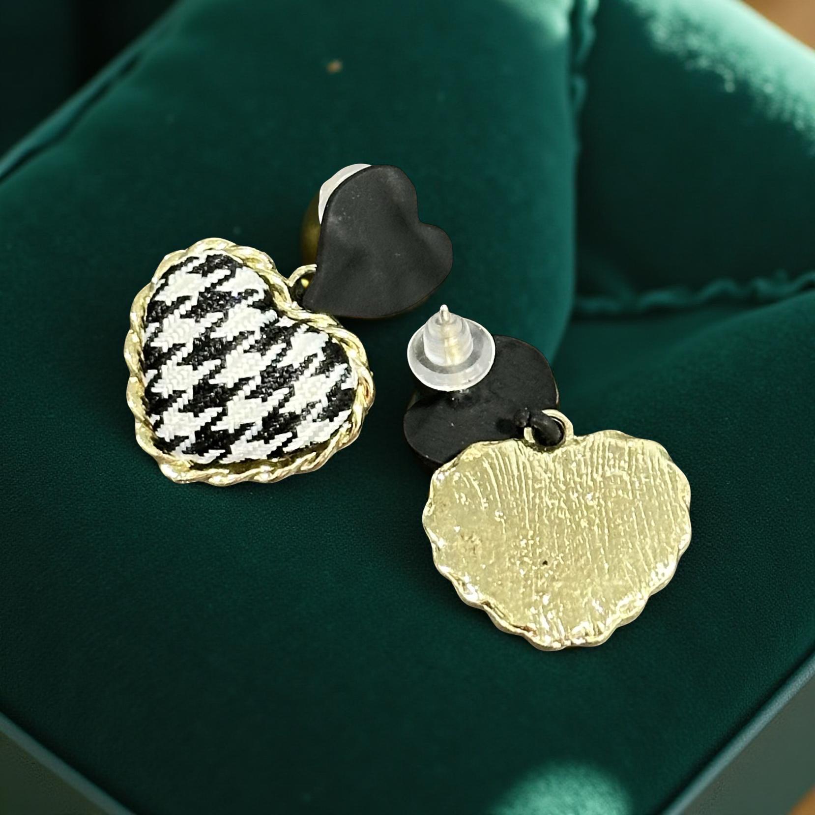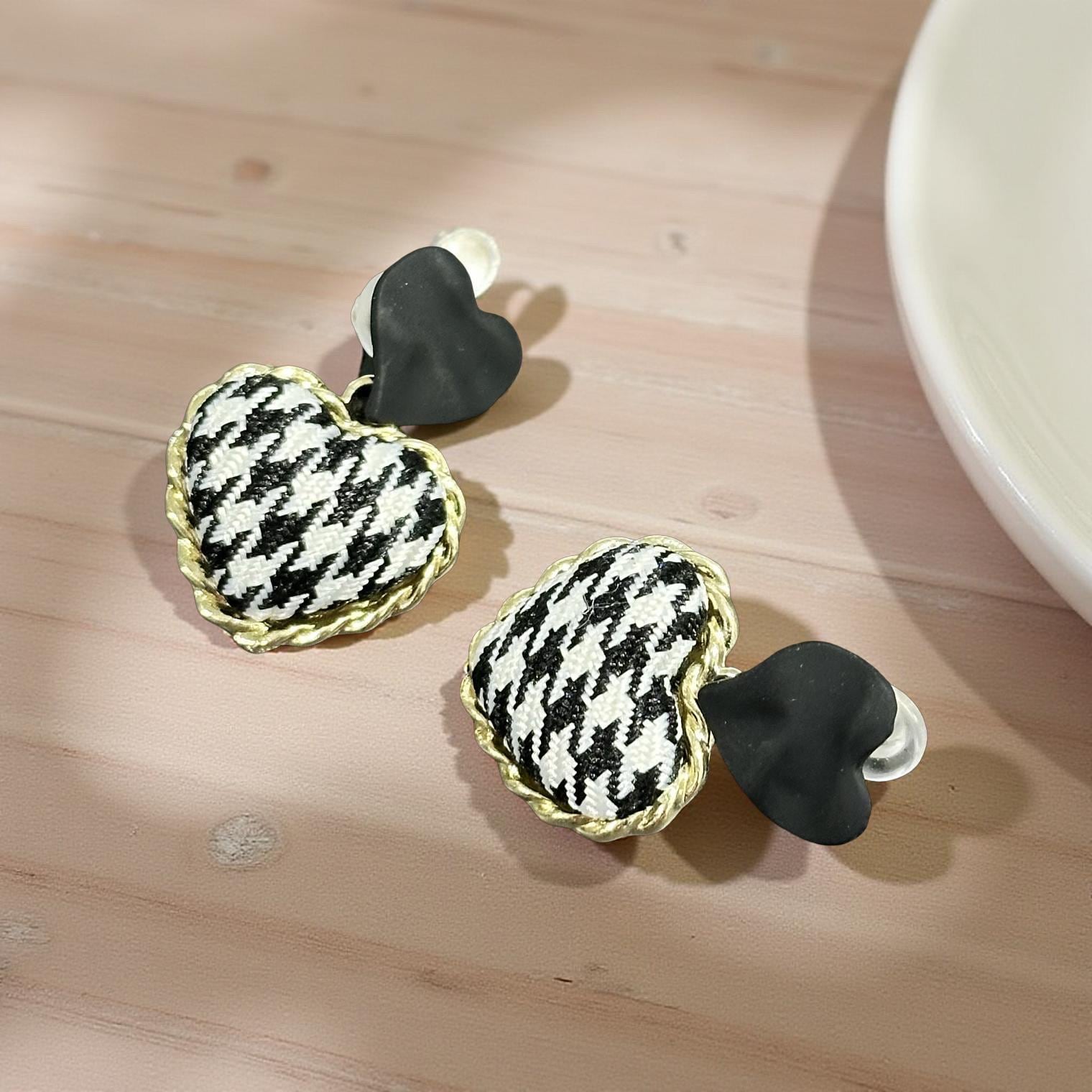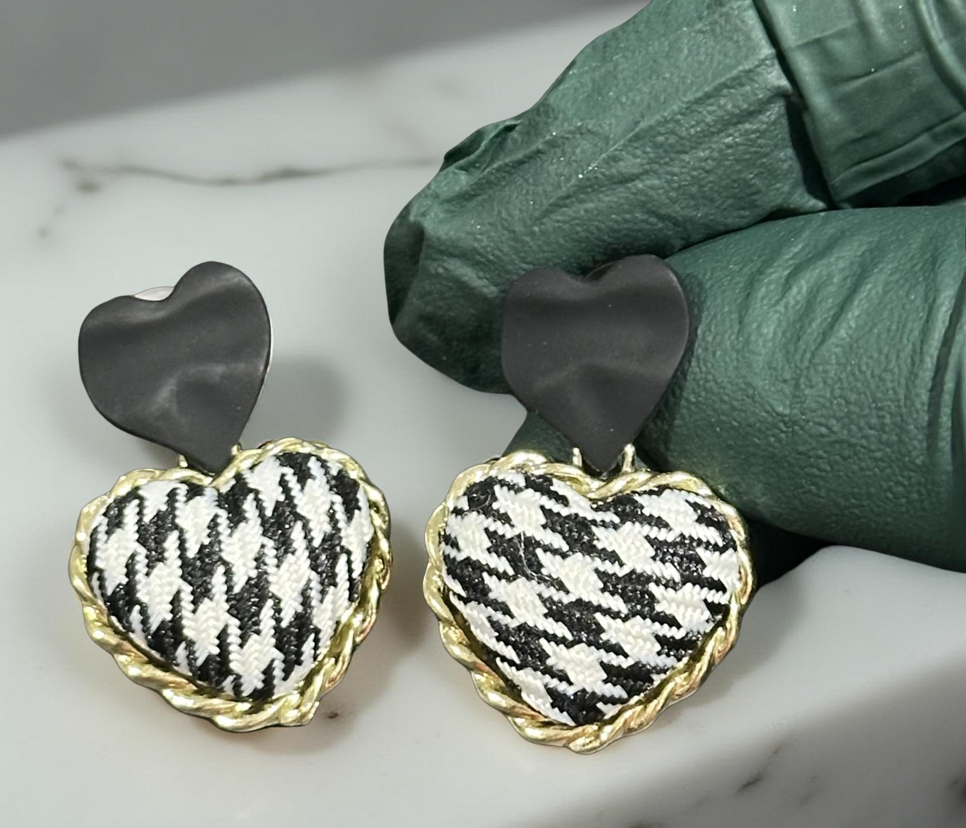 Add a charming touch to your jewelry collection with these handcrafted heart-shaped earrings featuring a timeless black-and-white houndstooth pattern. Framed in a sleek gold-tone border, each pair combines vintage charm with modern simplicity. Lightweight and versatile, they’re perfect for everyday wear or dressing up for special occasions. Made with love, these earrings are a stylish reminder that classic patterns can be fresh and fun.