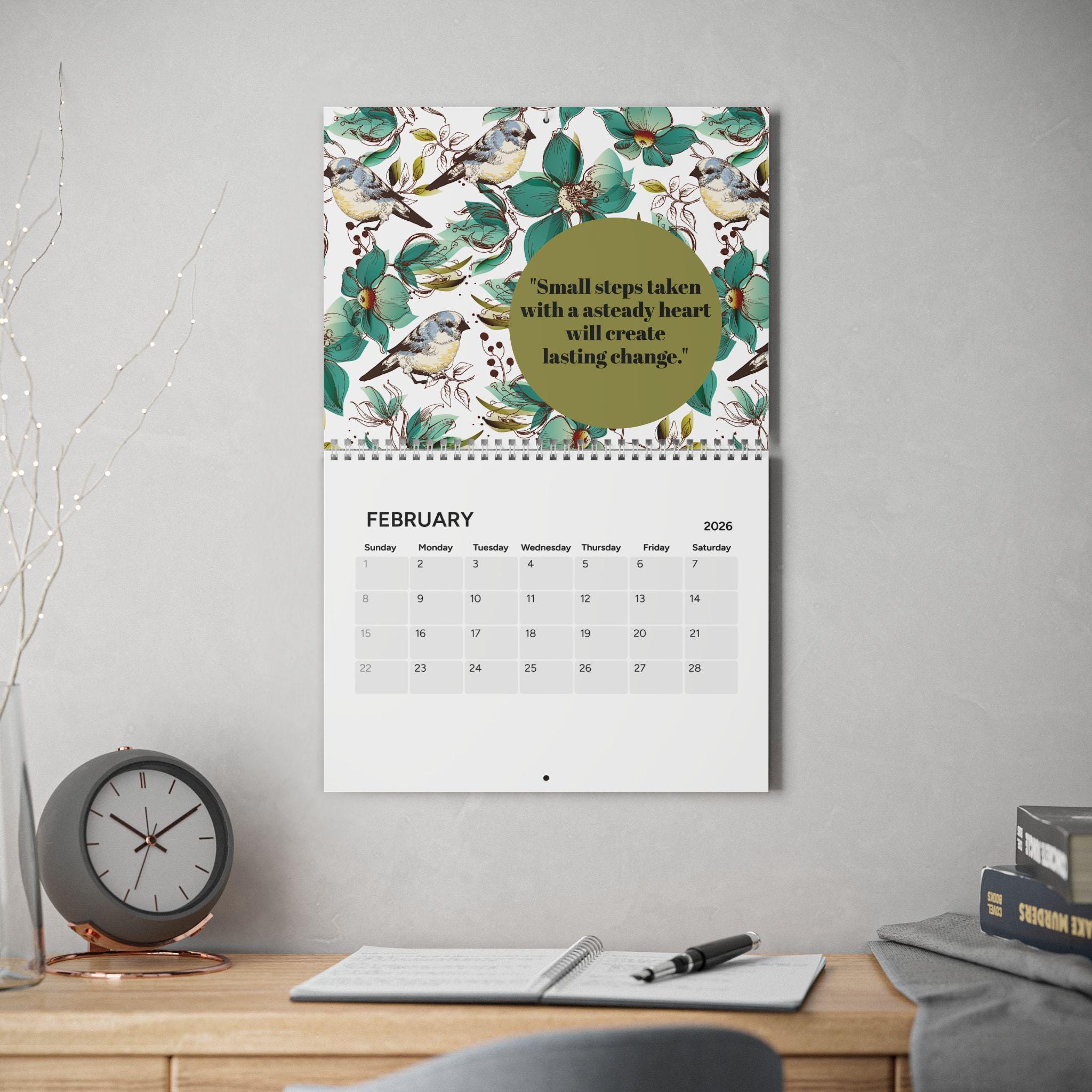 2026 Wall Calendar: Floral Bird Art, Motivational Quotes