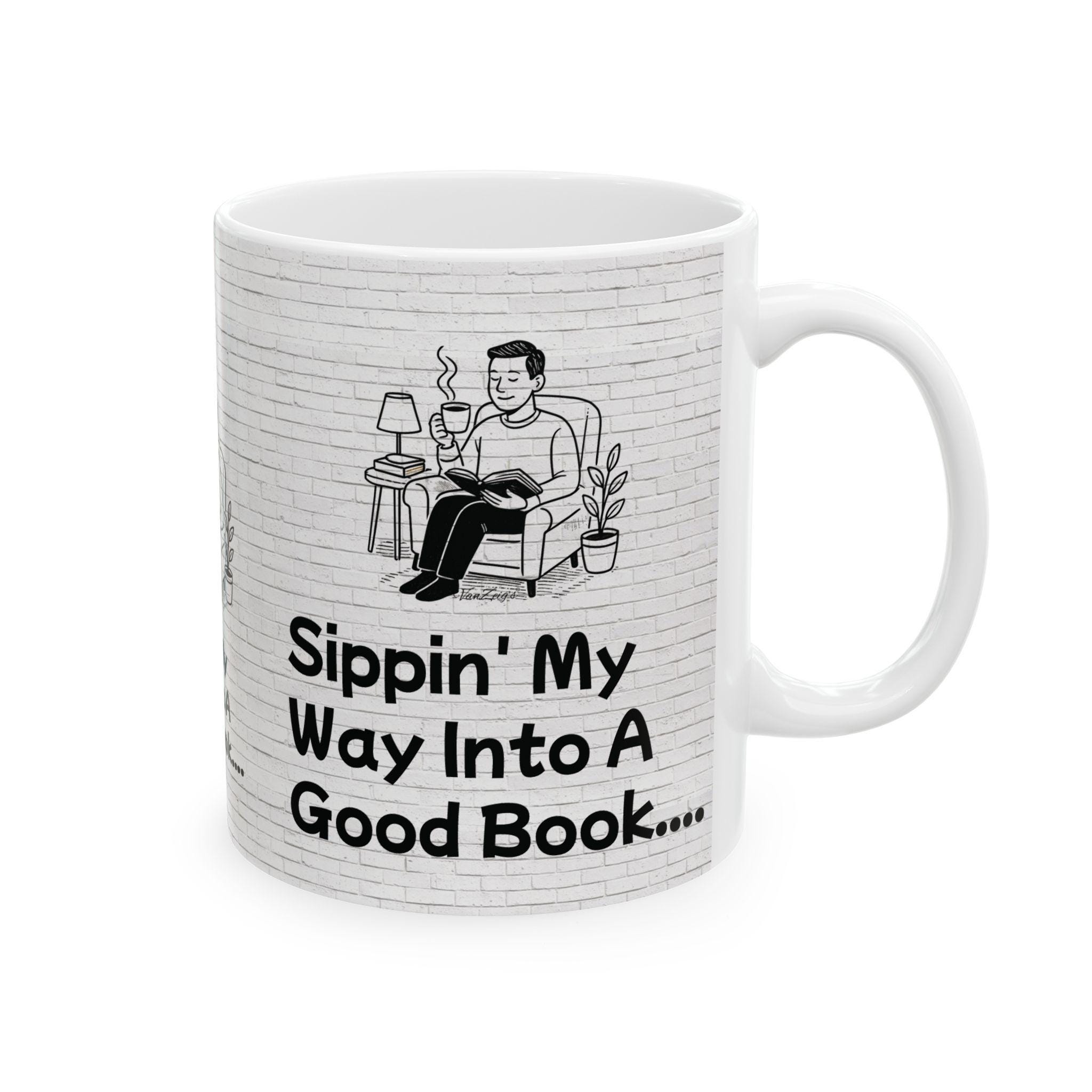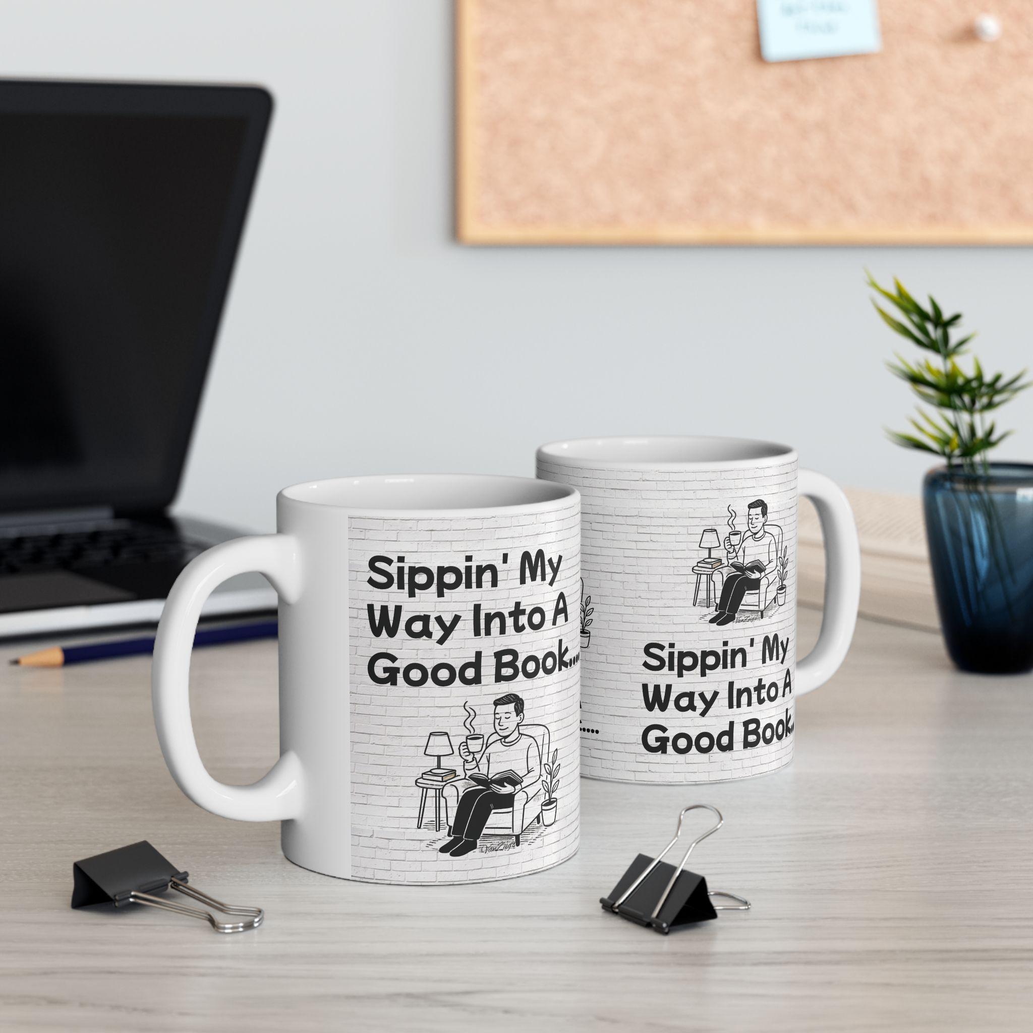 Cozy Reading Mug - Sippin' My Way Into A Good Book, Coffee Cup, Gift for Book Lovers, Home Office Decor, Reading Accessories, Coffee