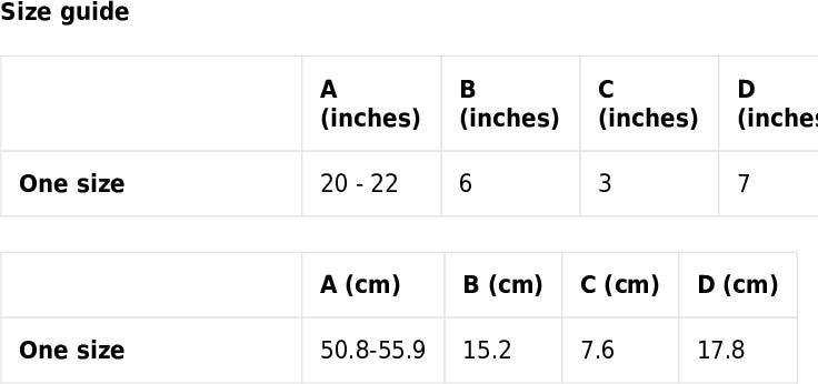 • Head circumference: 20″–22″ (50.8 cm–56 cm)