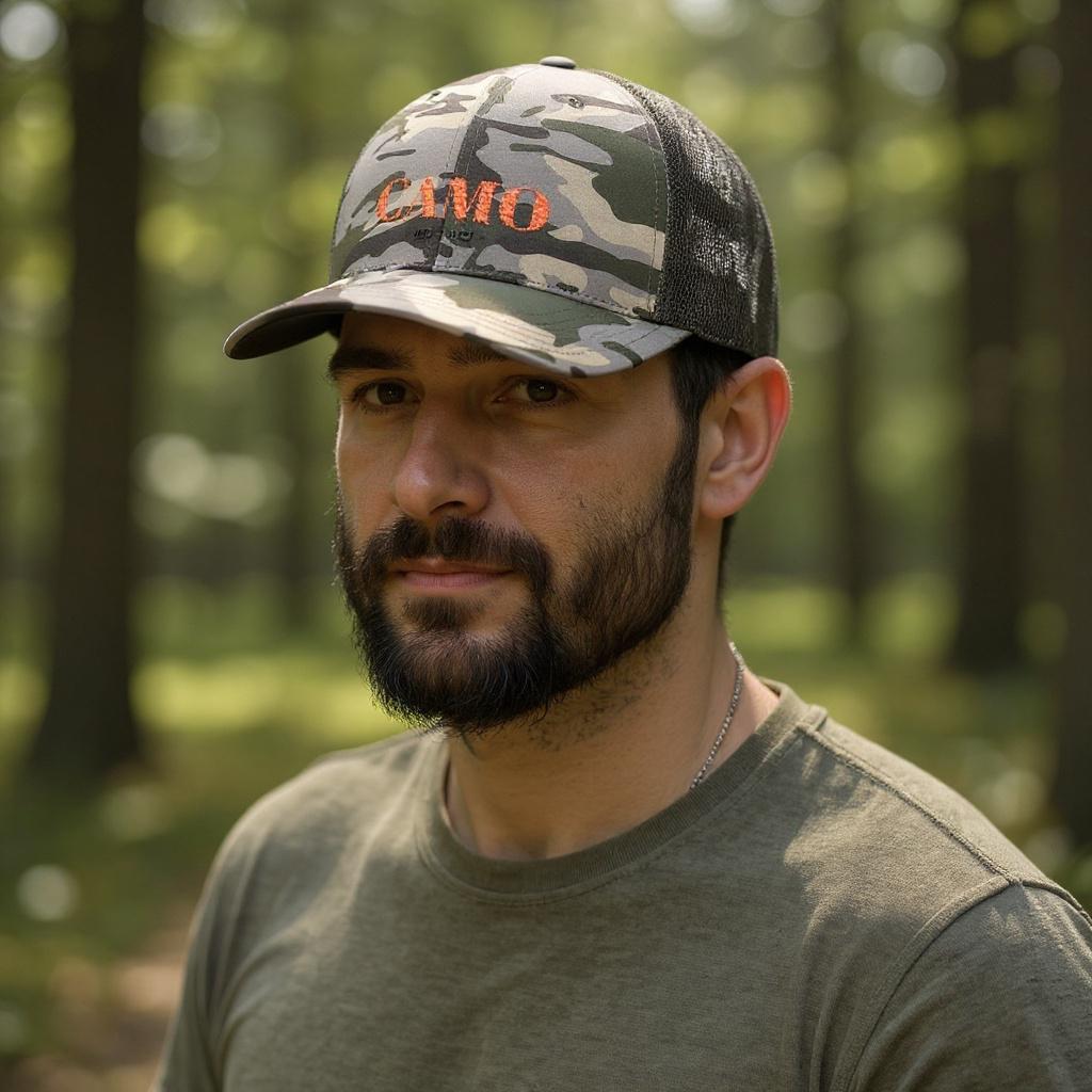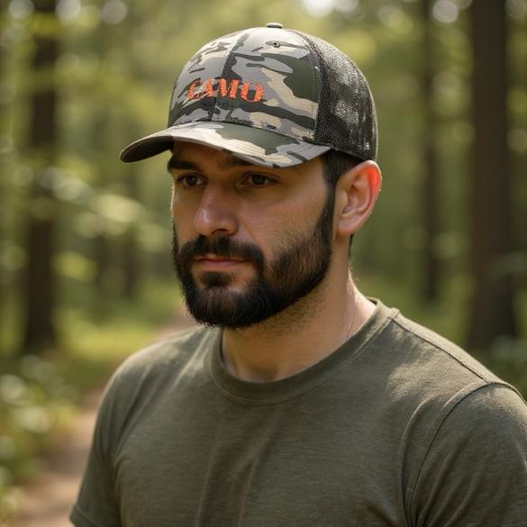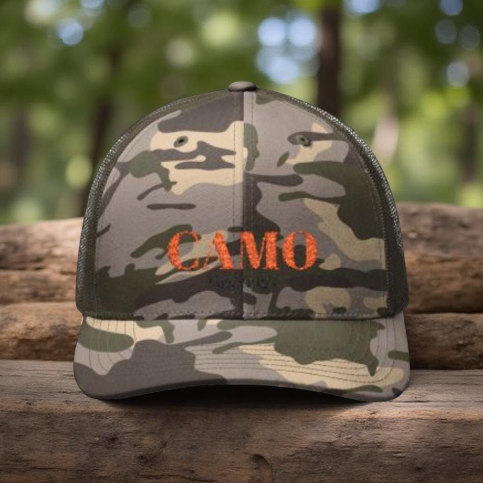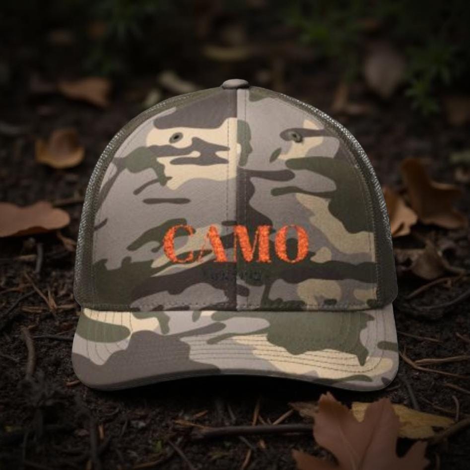 Camouflage Trucker Hat, Outdoor Cap, Hunting Hat, Casual Headwear, Embroidered Hat, Stylish Camo Hat