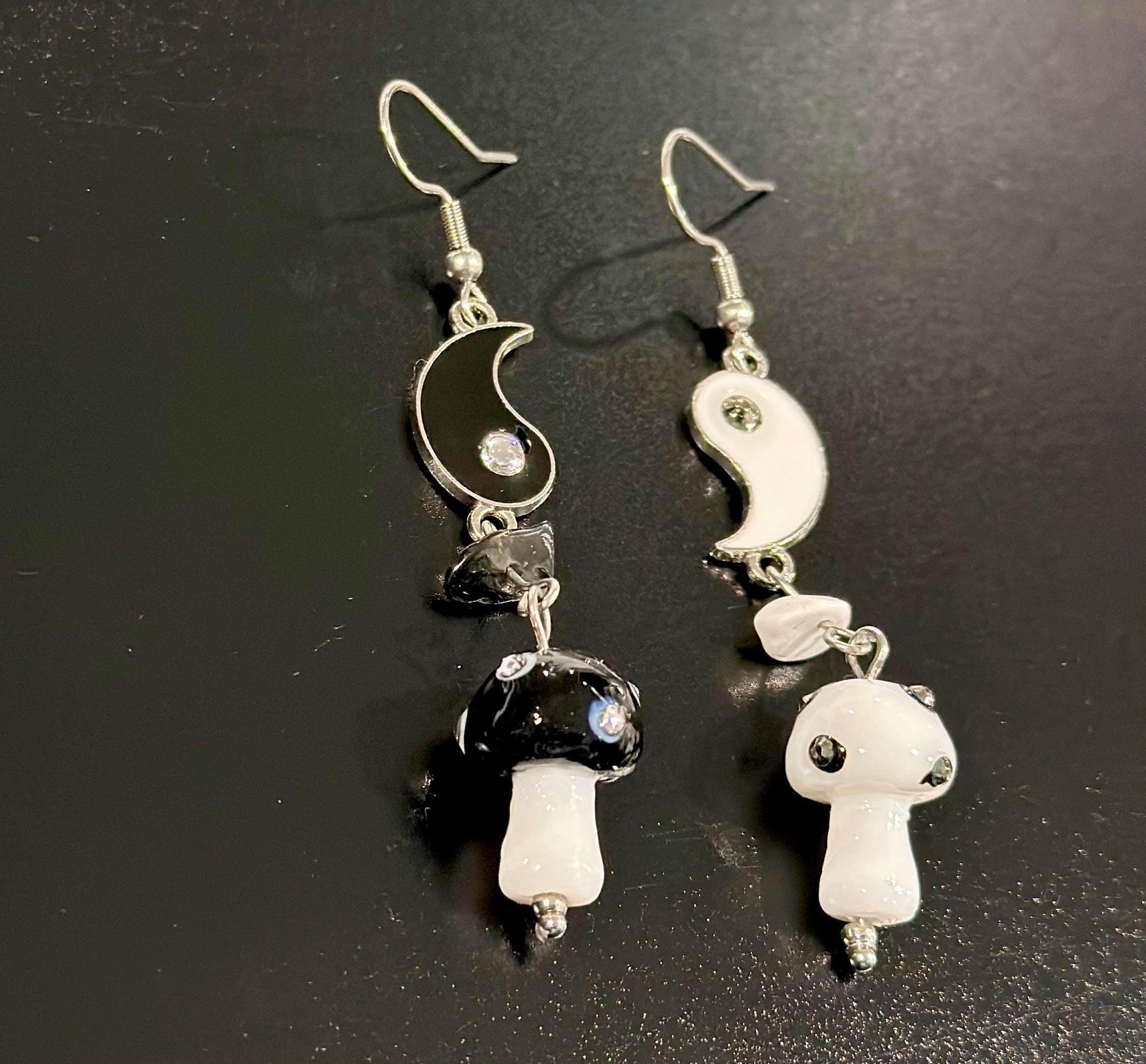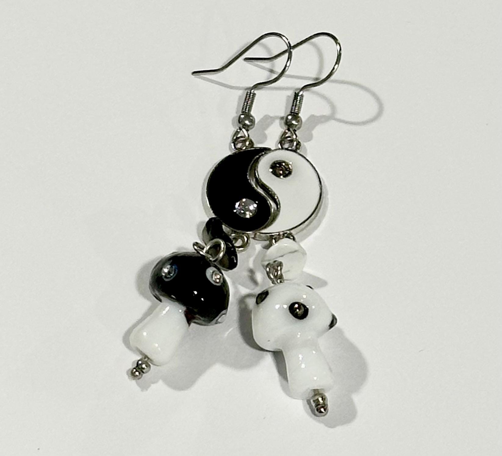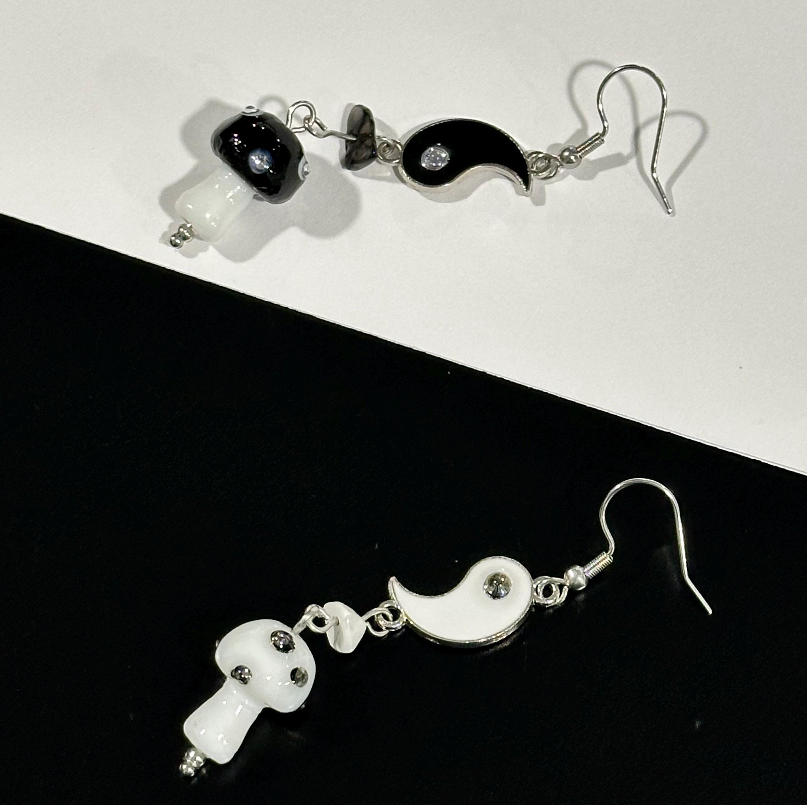 Elevate your everyday look with these Cute Yin Yang Mushroom Dangle Earrings. Handcrafted with a playful black-and-white yin yang mushroom design and shimmering stone drops, they’re lightweight, versatile, and perfect for gifting.