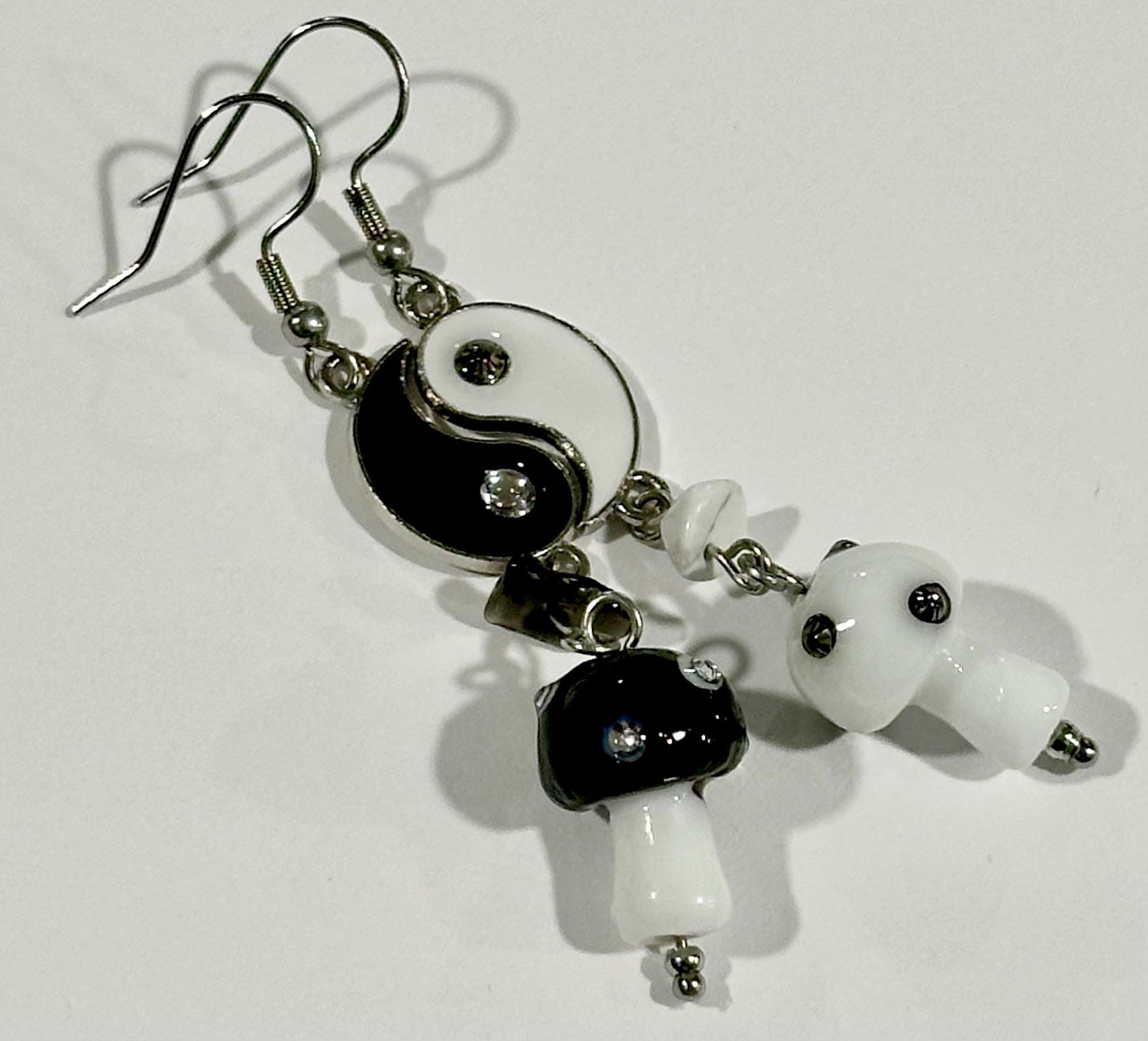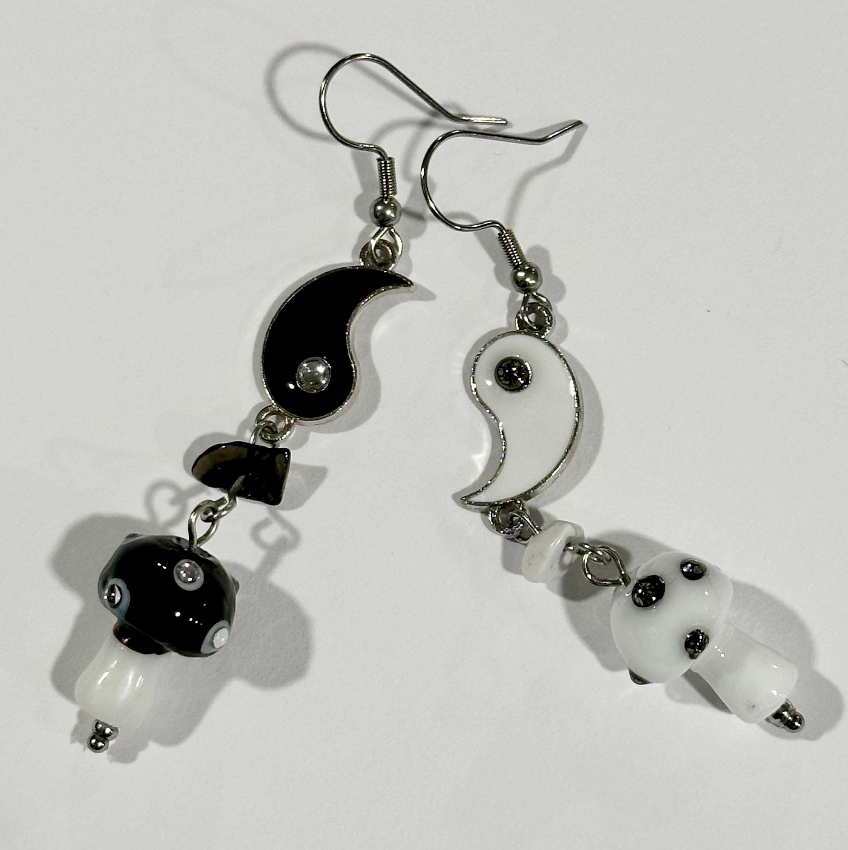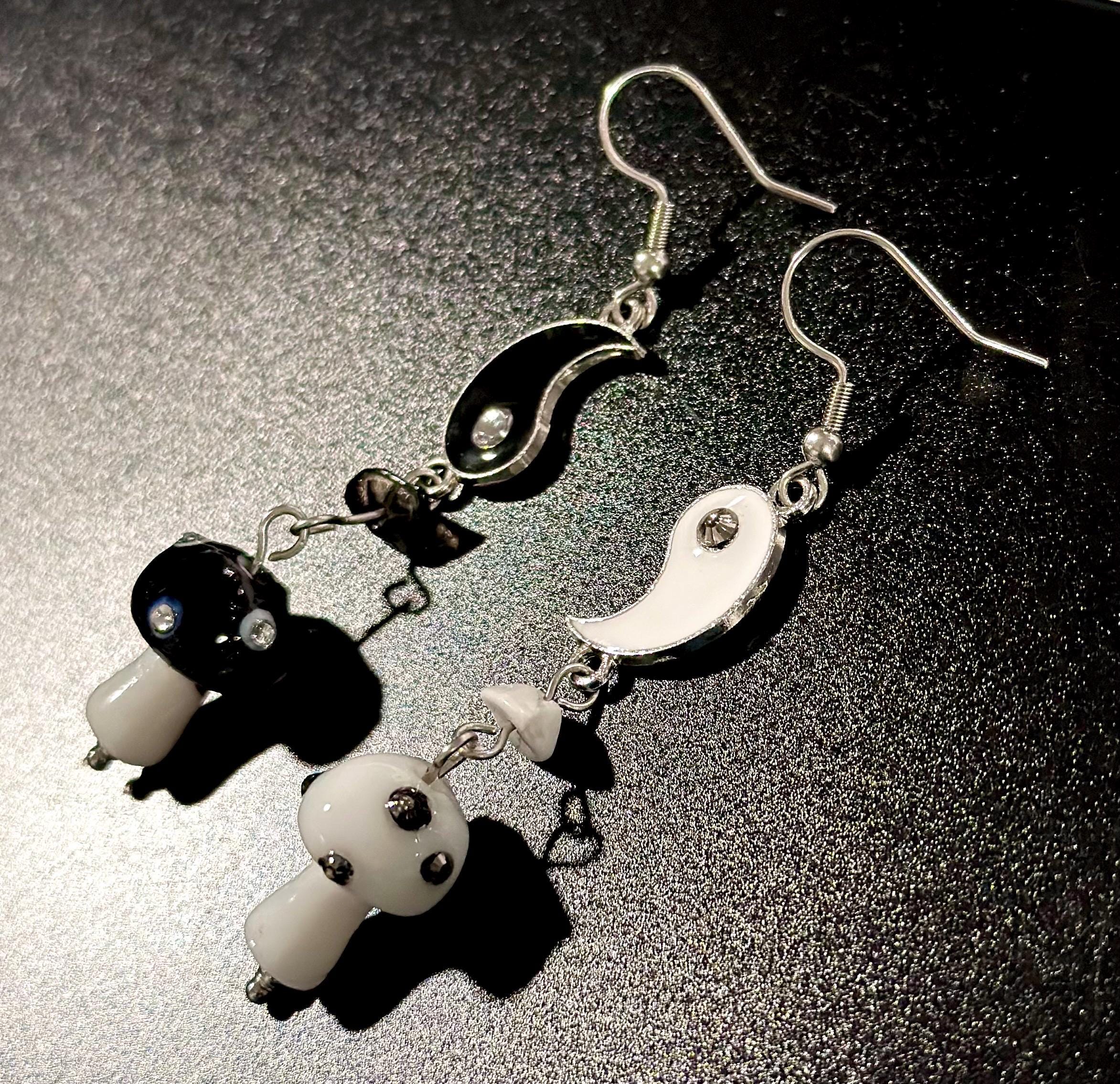 Elevate your everyday look with these Cute Yin Yang Mushroom Dangle Earrings. Handcrafted with a playful black-and-white yin yang mushroom design and shimmering stone drops, they’re lightweight, versatile, and perfect for gifting.