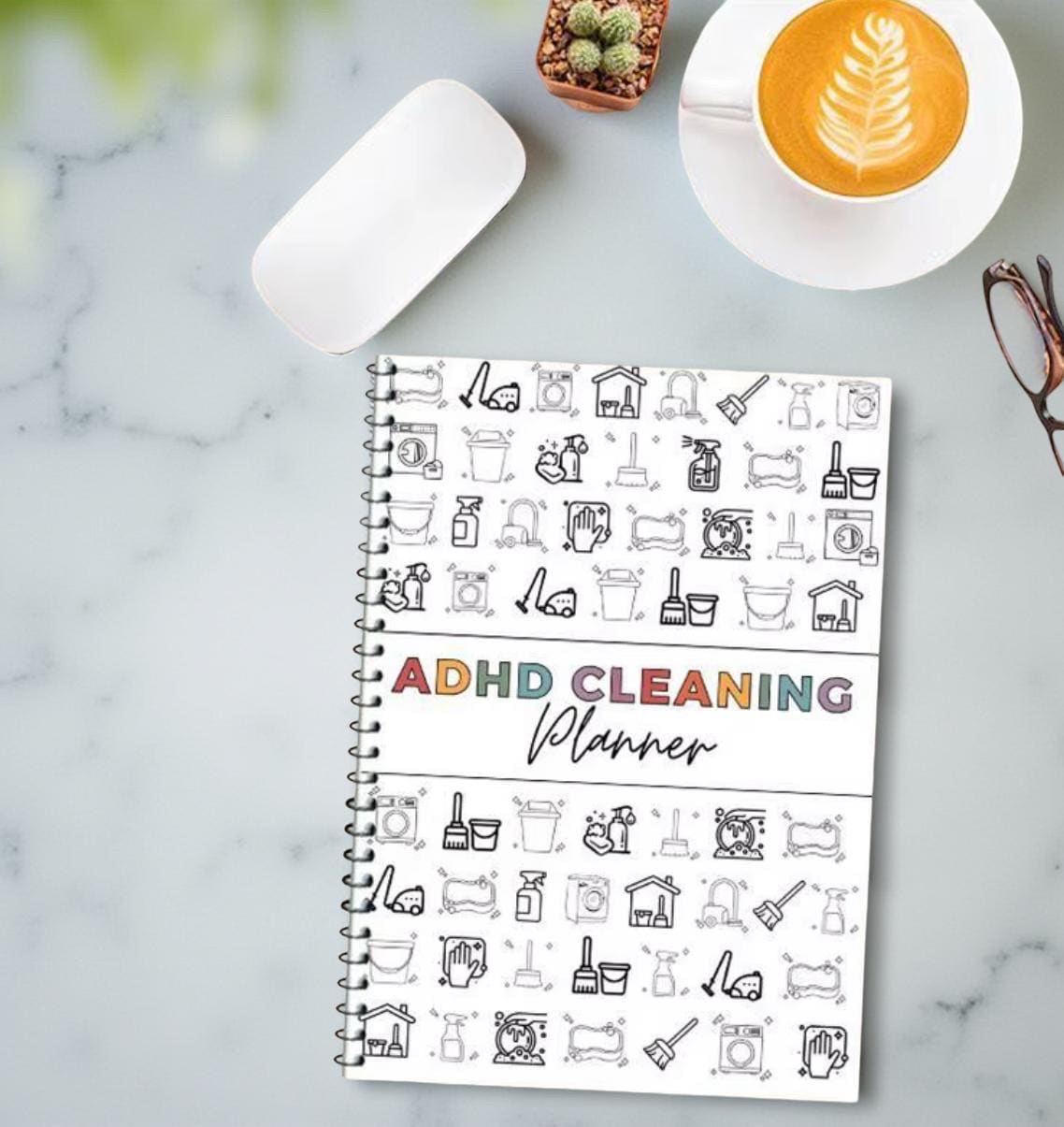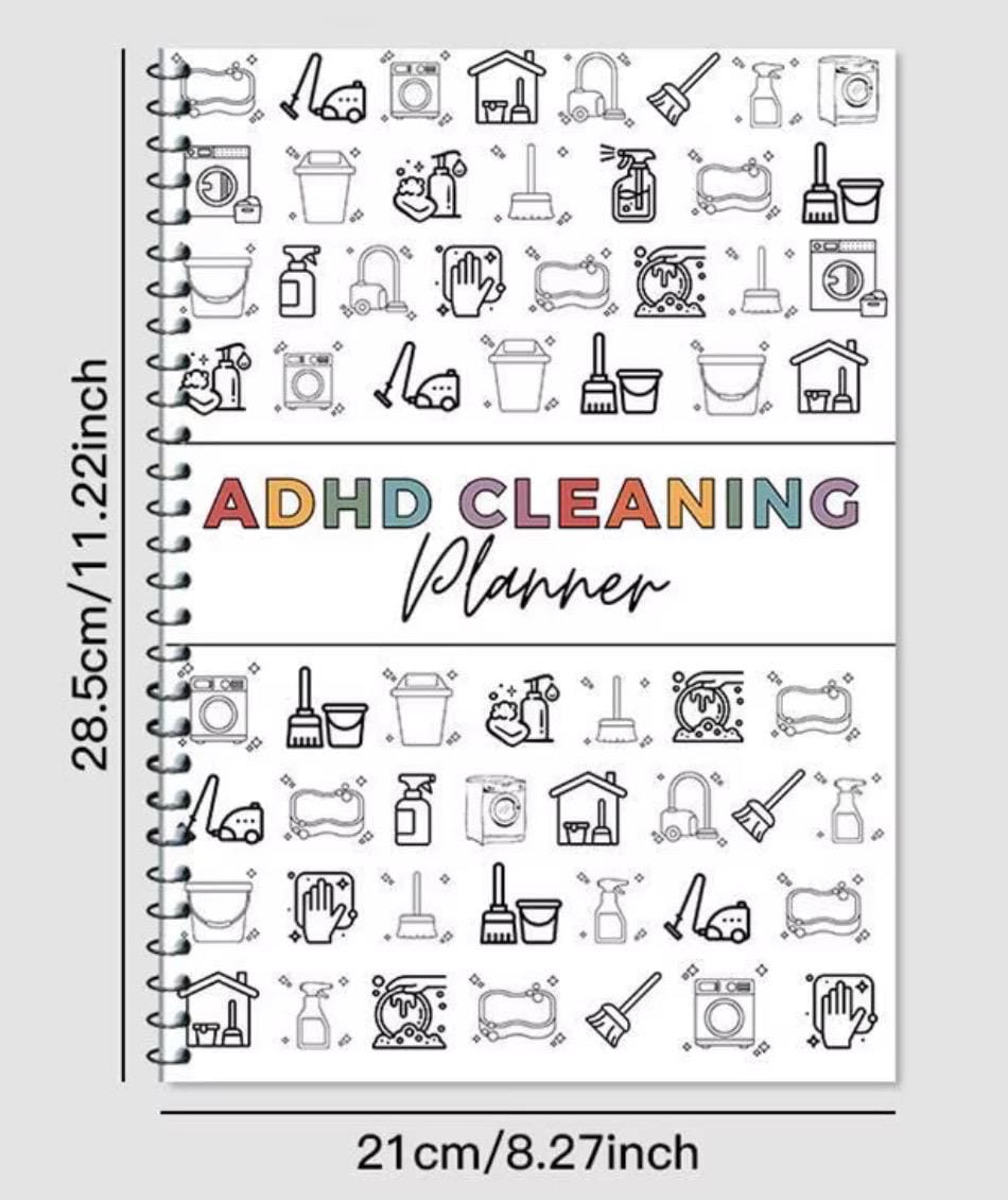 Stay on top of home chores with our ADHD Cleaning Planner, perfectly sized for everyday use. This spiral-bound, fillable notebook is designed for quick, focused cleaning sessions and clearly organized timelines to help you finish faster—without feeling overwhelmed. Includes daily routines, monthly checklists, quarterly and yearly schedules, plus room-by-room speed cleaning prompts and dedicated outdoor and playroom deep-clean sections.