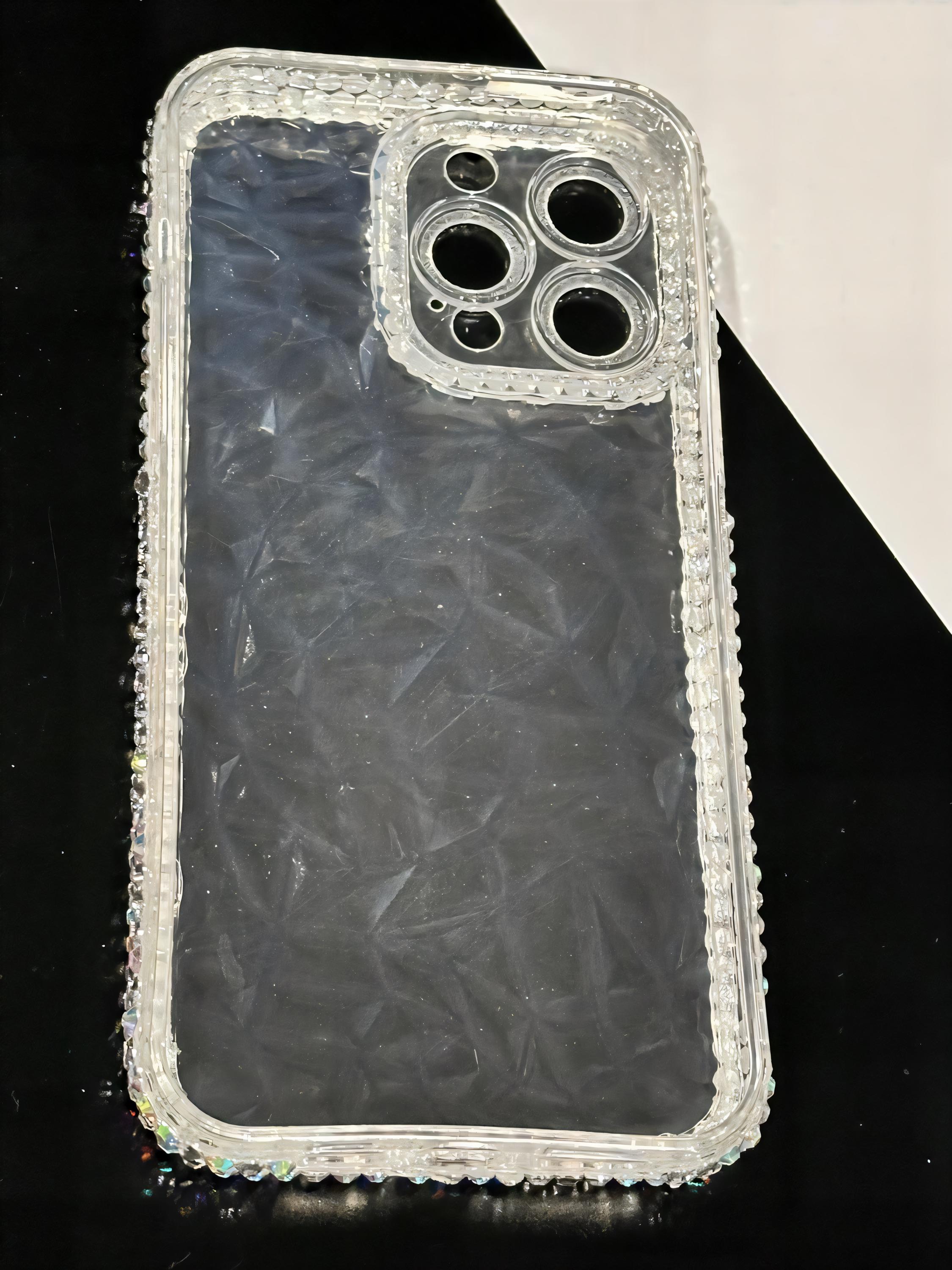 Handmade Clear AB Rhinestone iPhone 14 Pro Max Case – 3D Diamond Sparkle, Protective Silicone