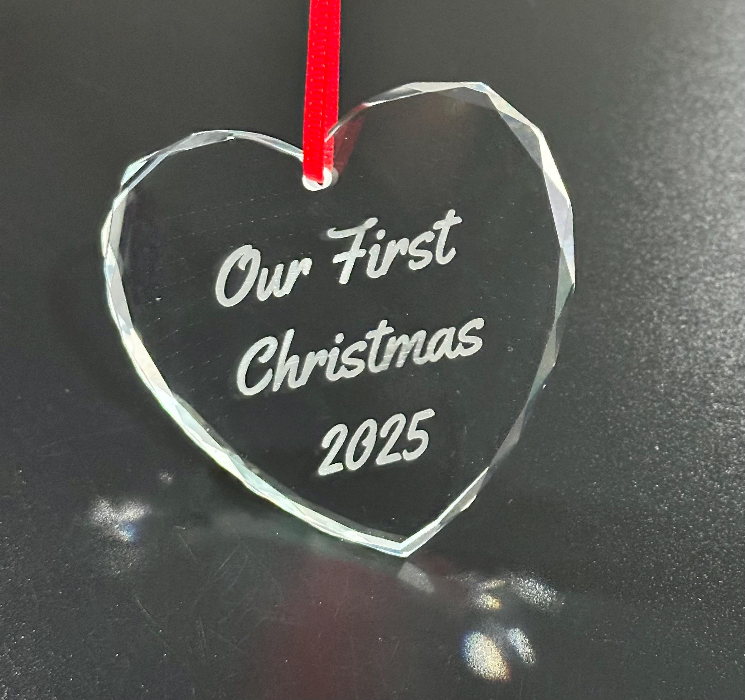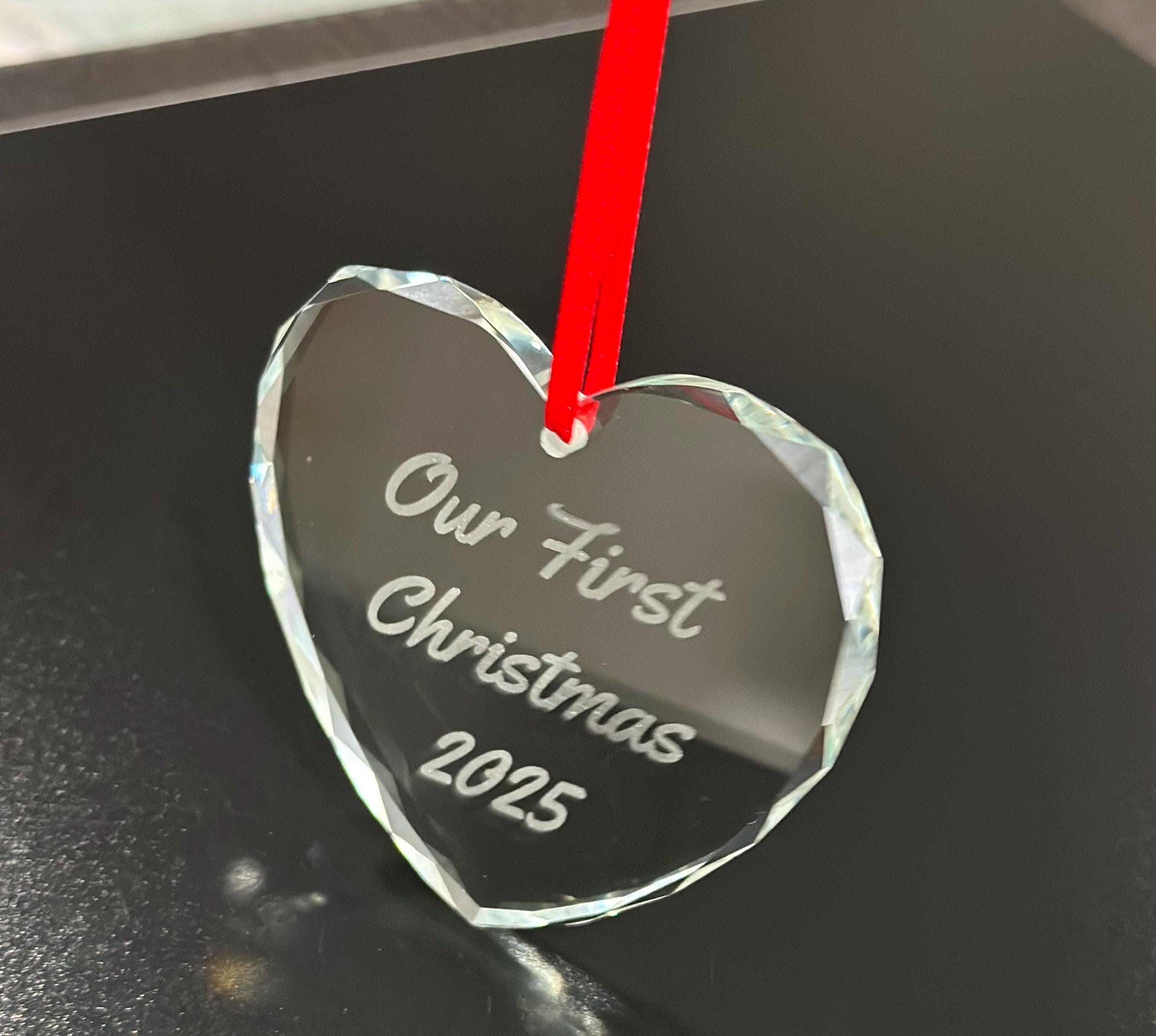 Our First Christmas 2025 Crystal Glass Ornament | Engraved Round or Heart