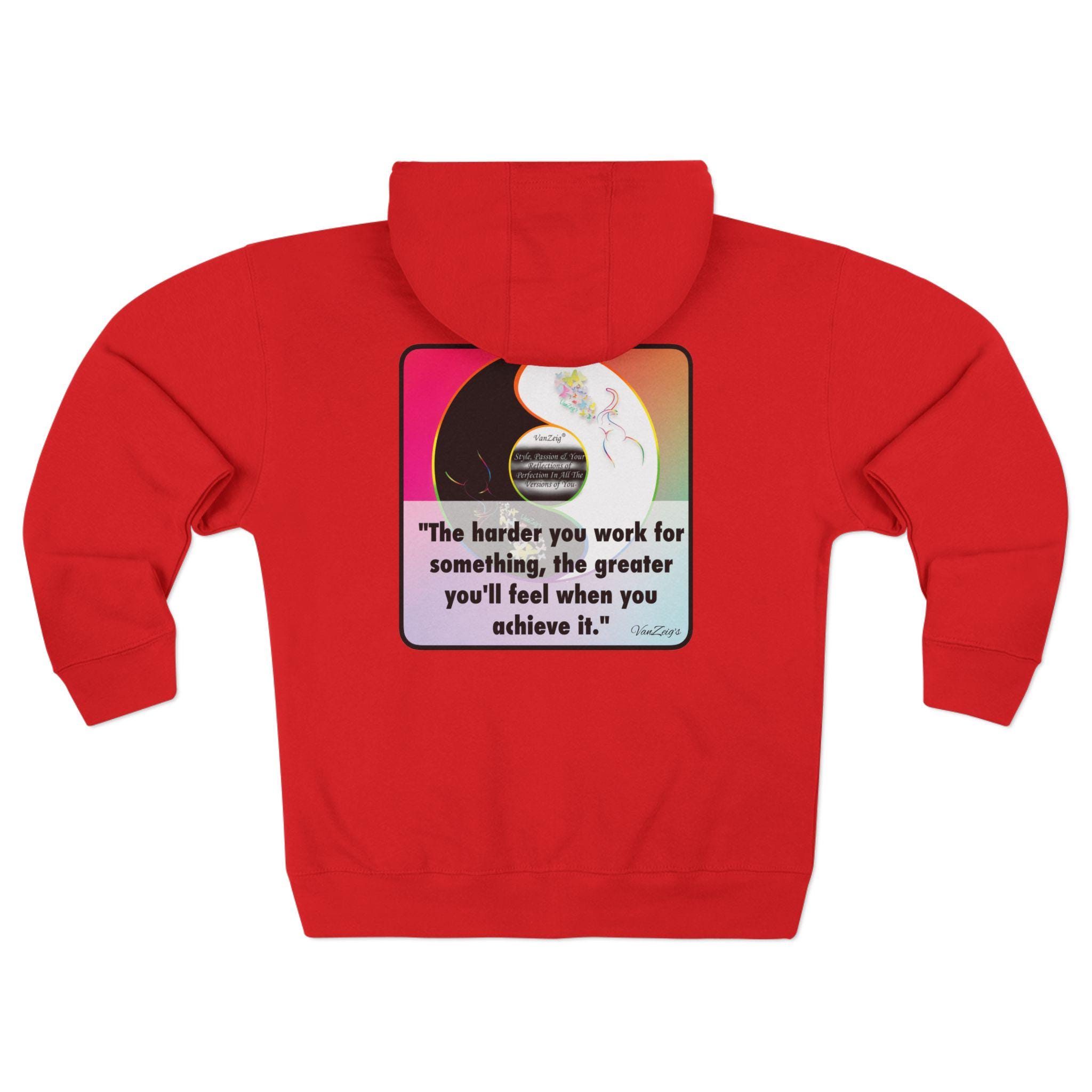 This Zip Hoodie features a Yin Yang Vinyl Record design with a motivational quote, providing quiet focus and tactile comfort. Perfect for late-night studio sessions, morning commutes, or weekend record digging. It is practical for layering and everyday wear, offering warmth without being too loud. Suitable for adults who appreciate nostalgic vibes and motivational messages. Relevant for casual wear, studio work, or small wins celebrations.