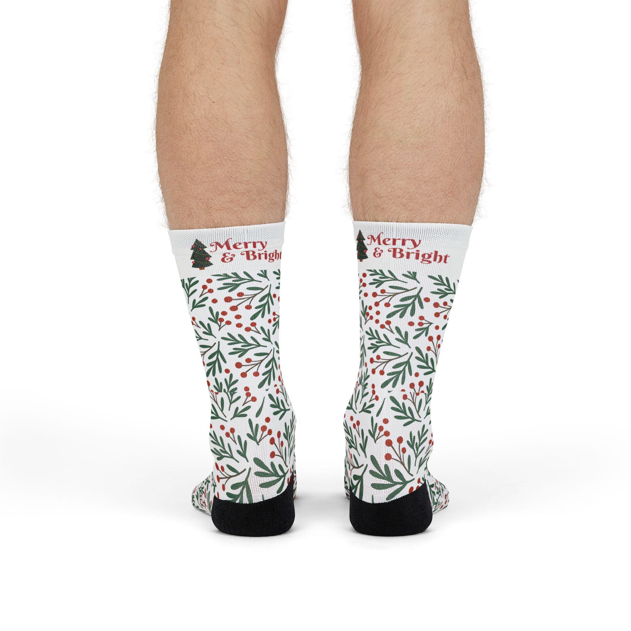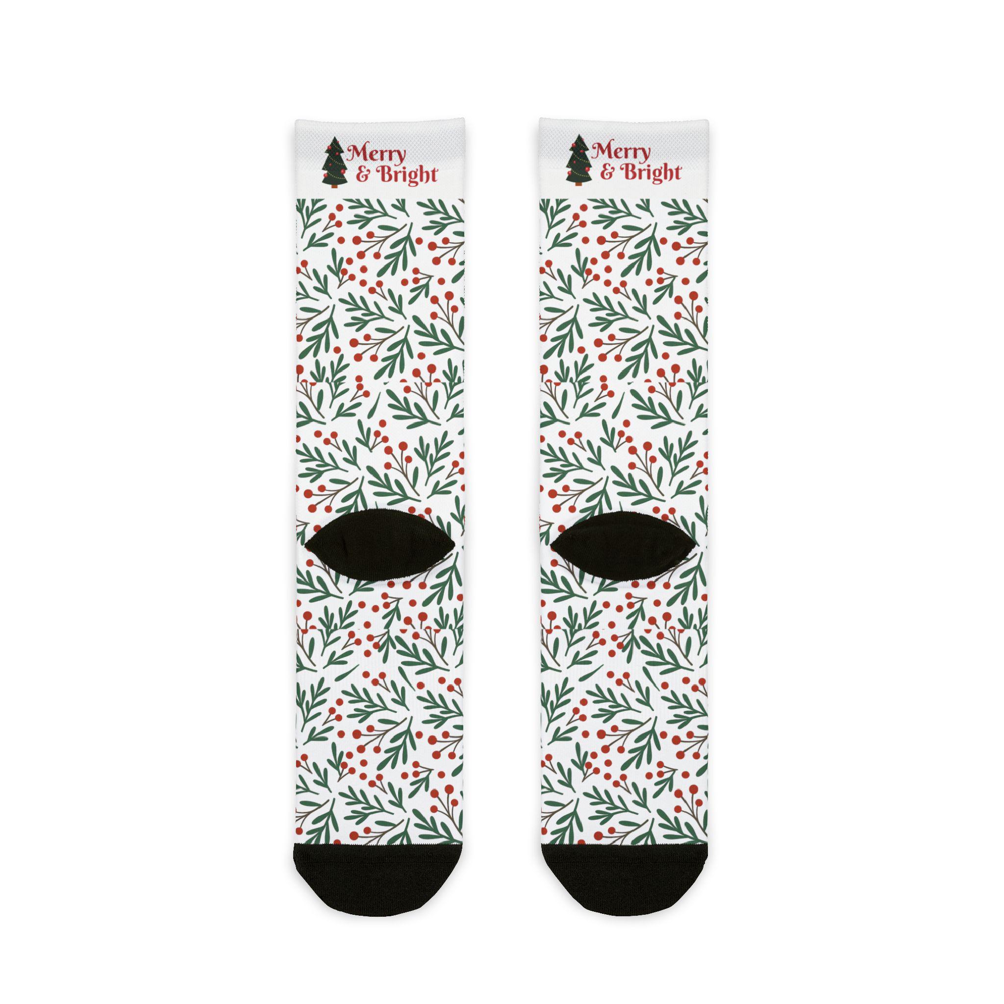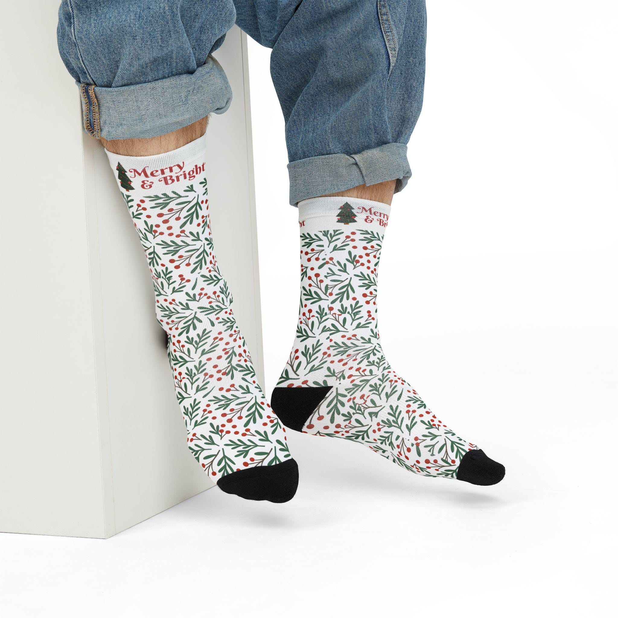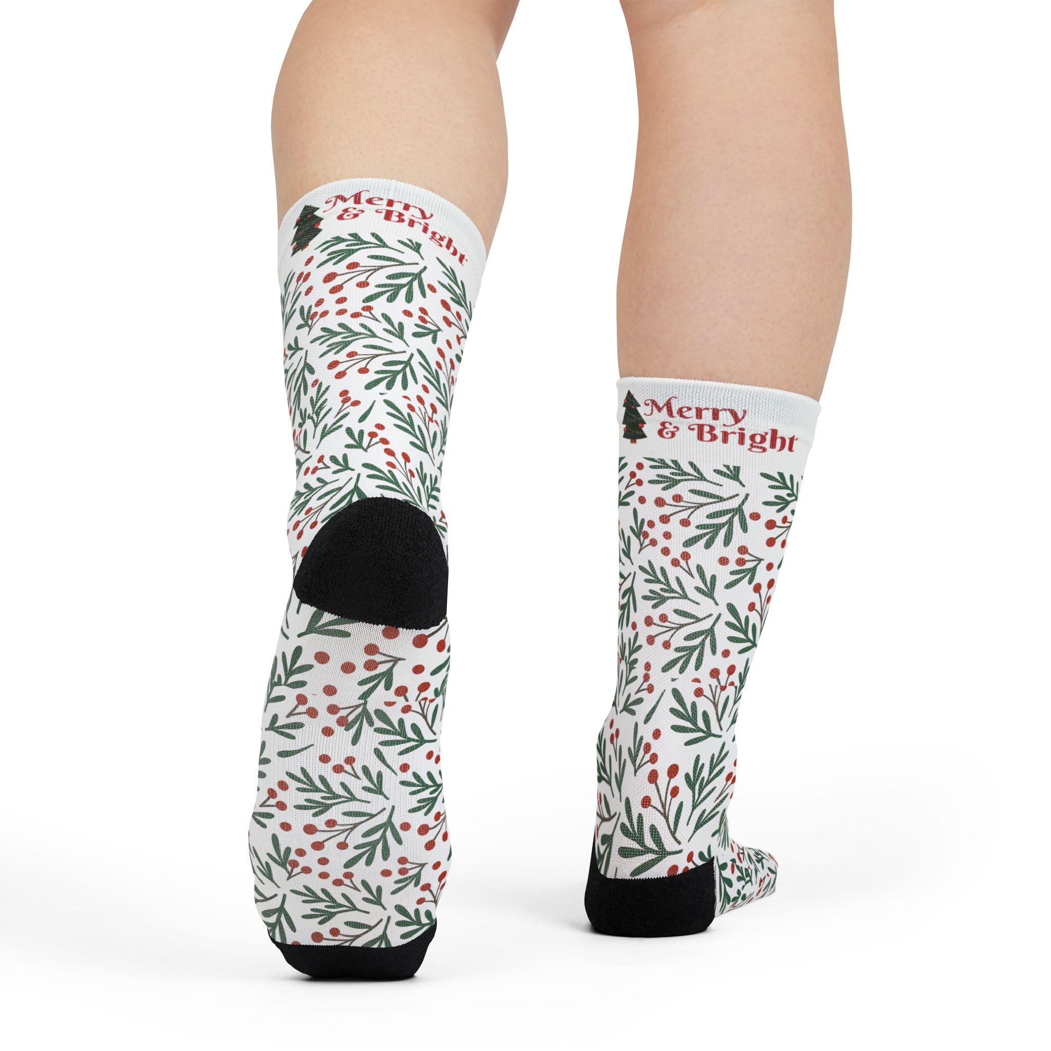 Merry & Bright Holly Pattern Crew Socks | Christmas Holiday Socks