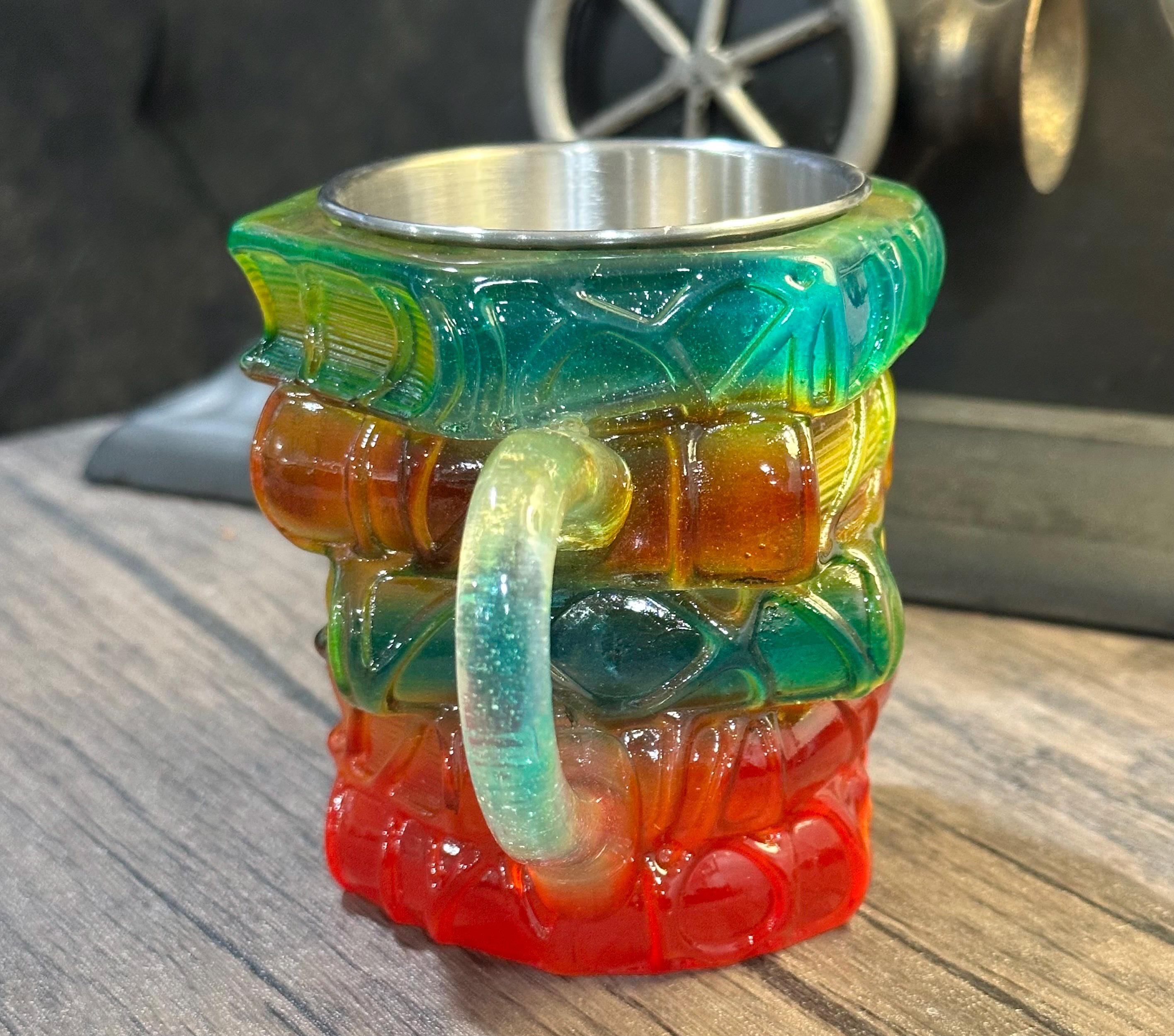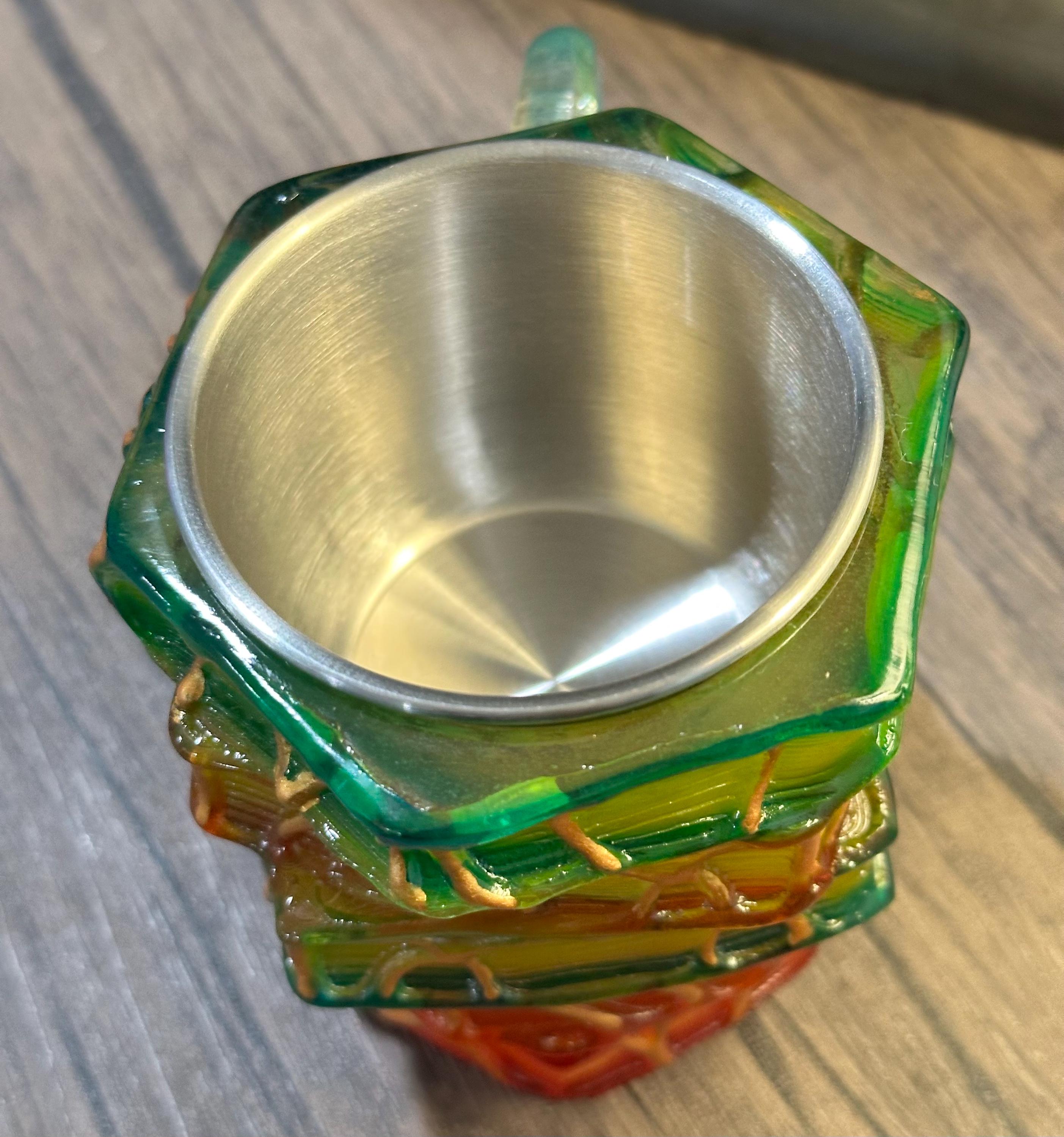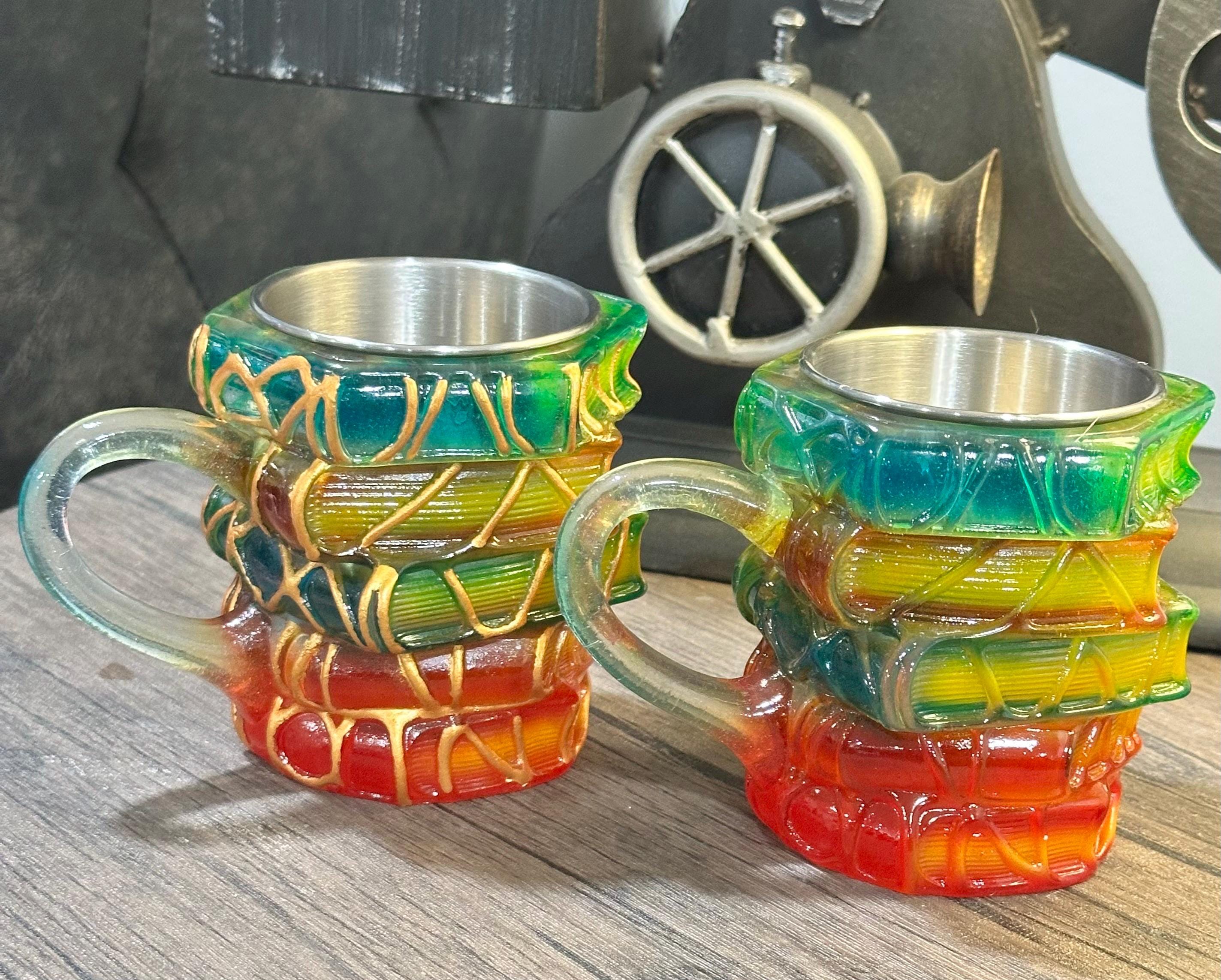 Material: stainless steel mug with a 3D resin book-stack embellishment