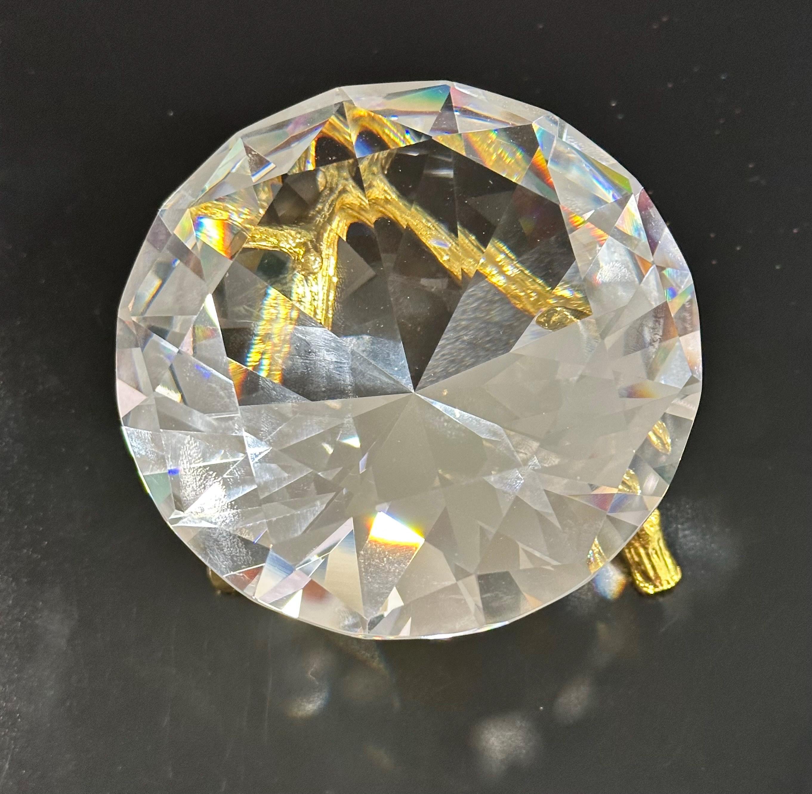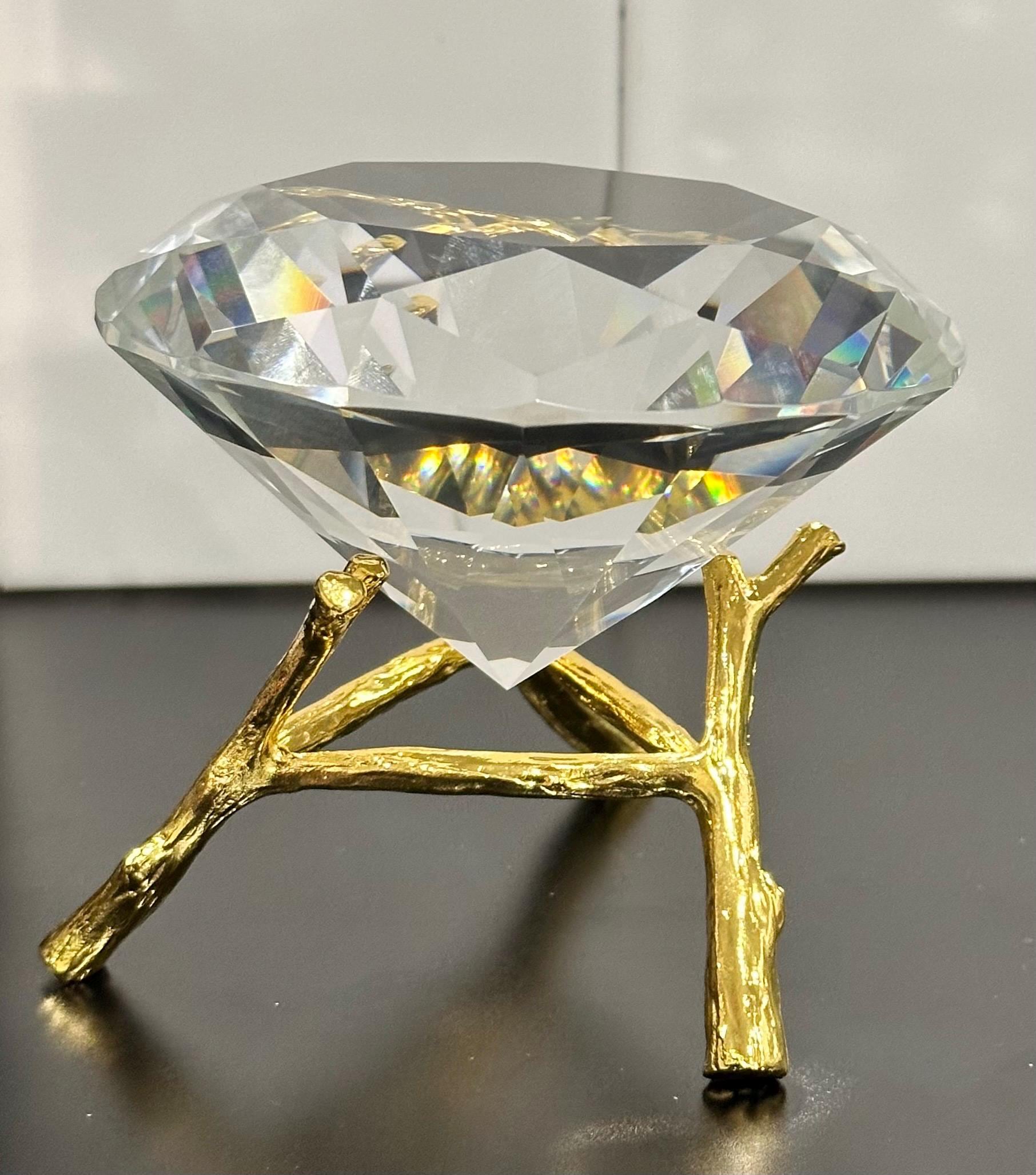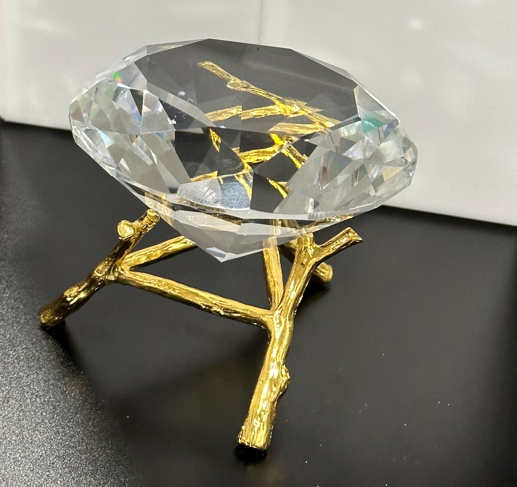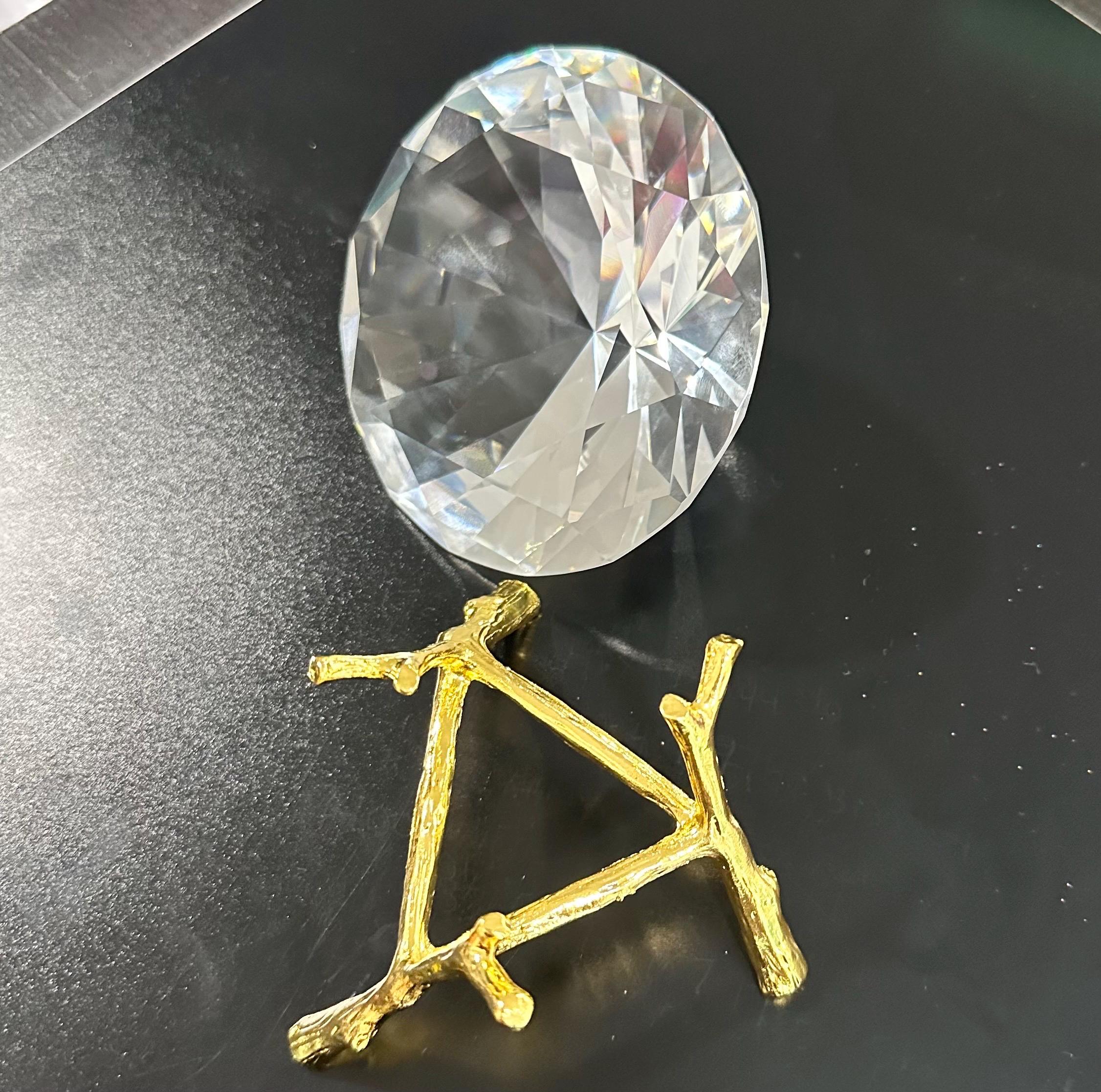 K9 Crystal Diamond Shaped Paperweight – 100mm Clear Optical Crystal with Gold Twig Stand