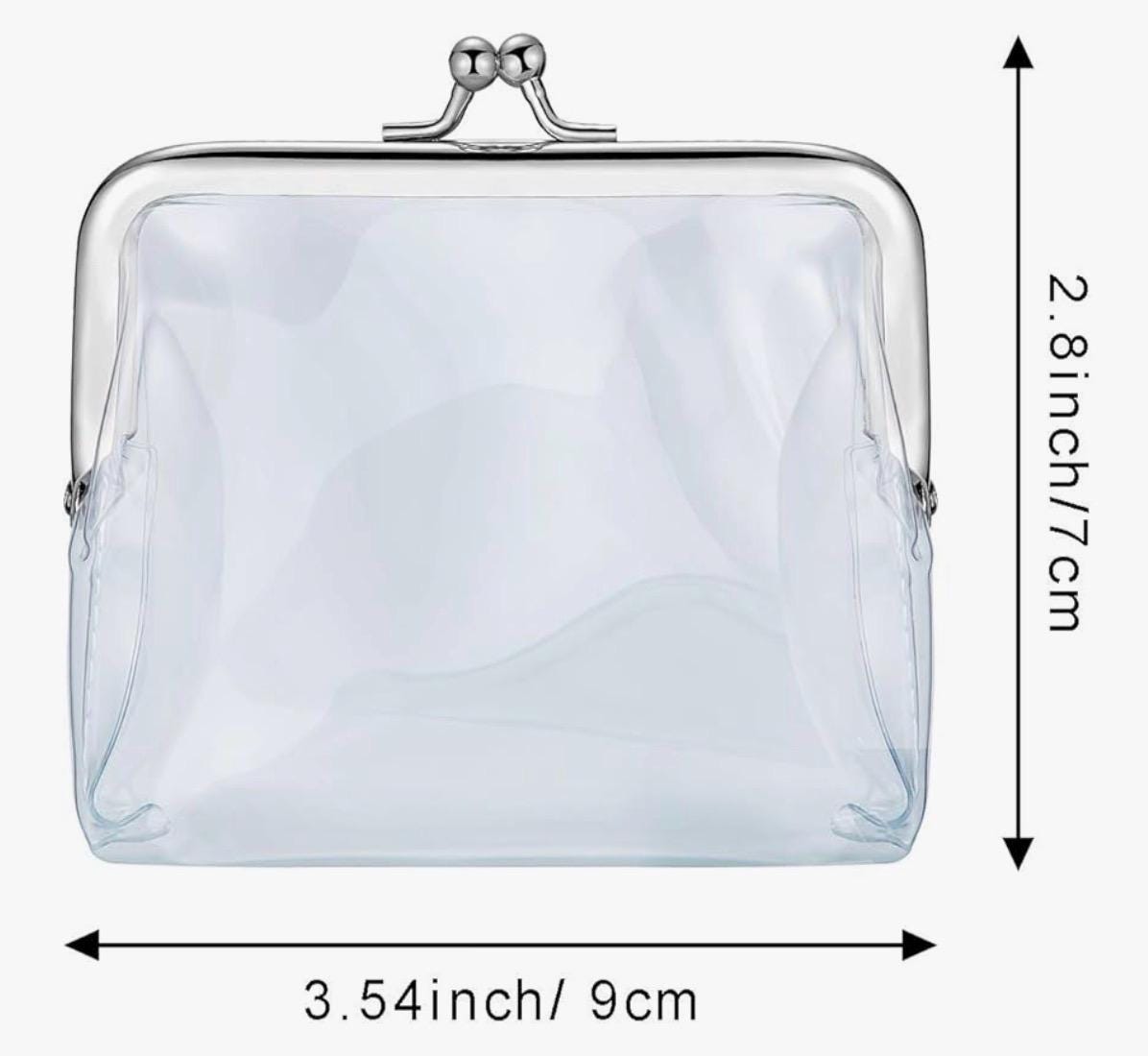 Clear PVC pouch keeps essentials in sight, while the kiss closure adds secure closure.