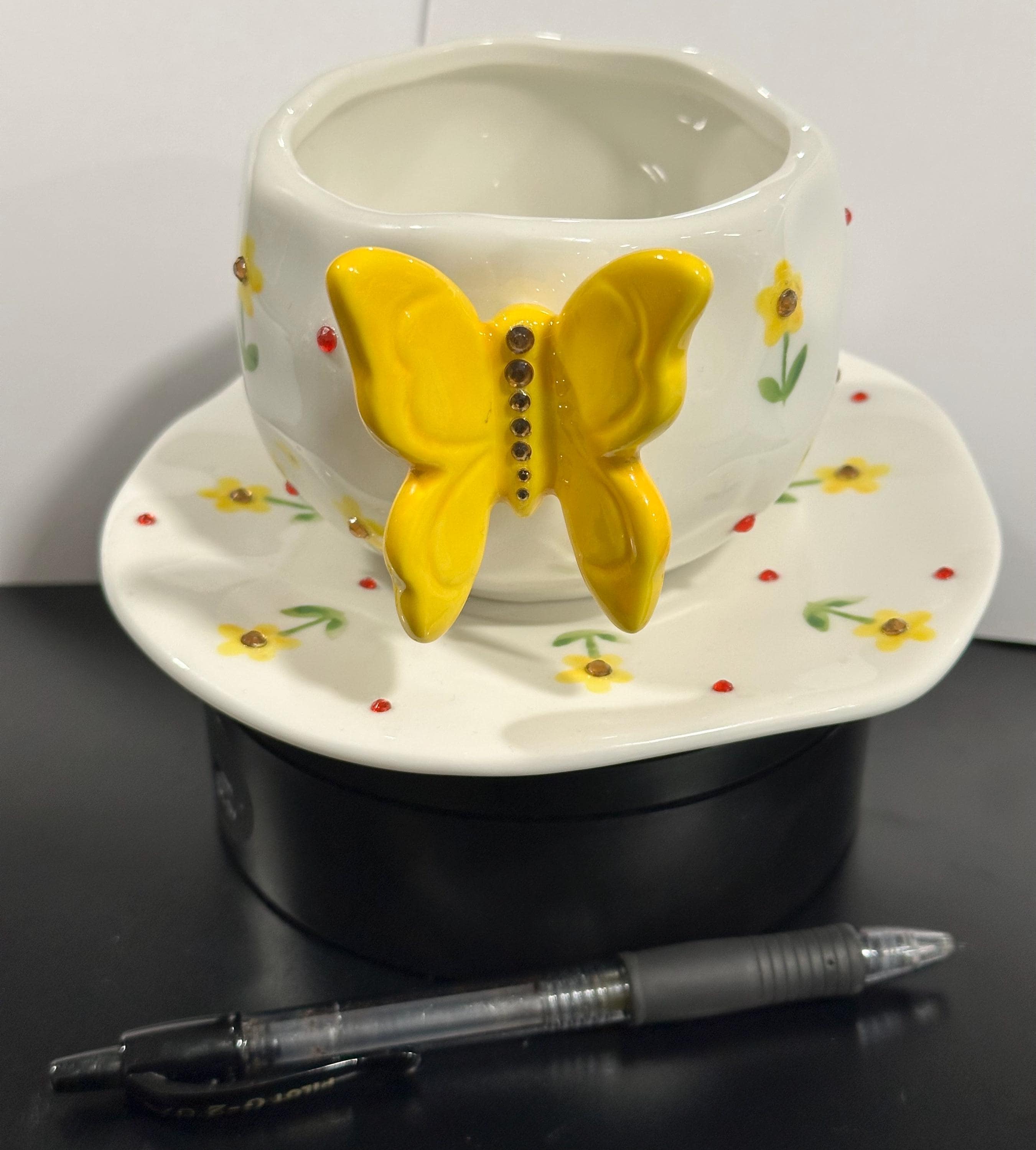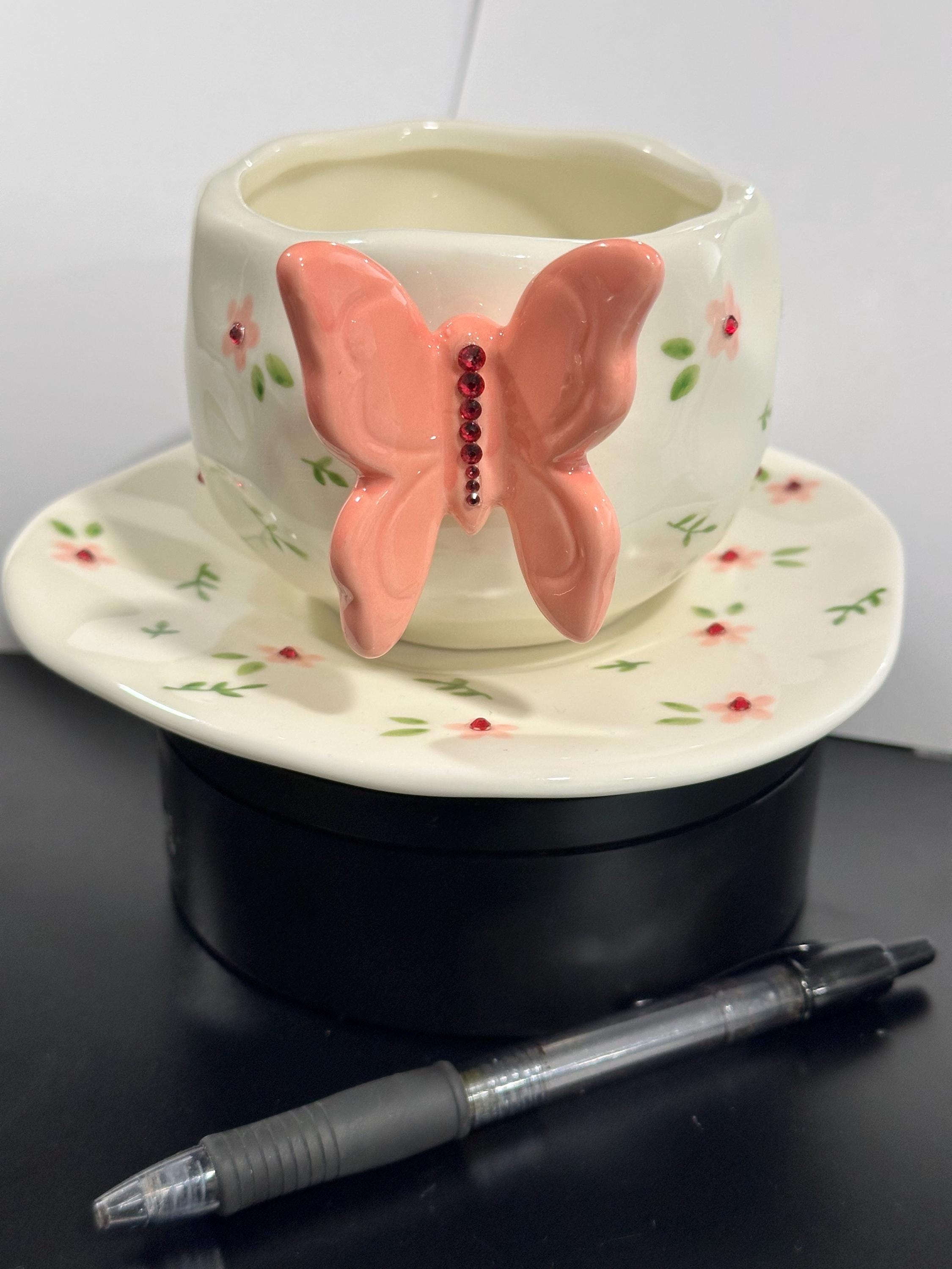 3D butterfly accent on the cup for a unique tactile charm