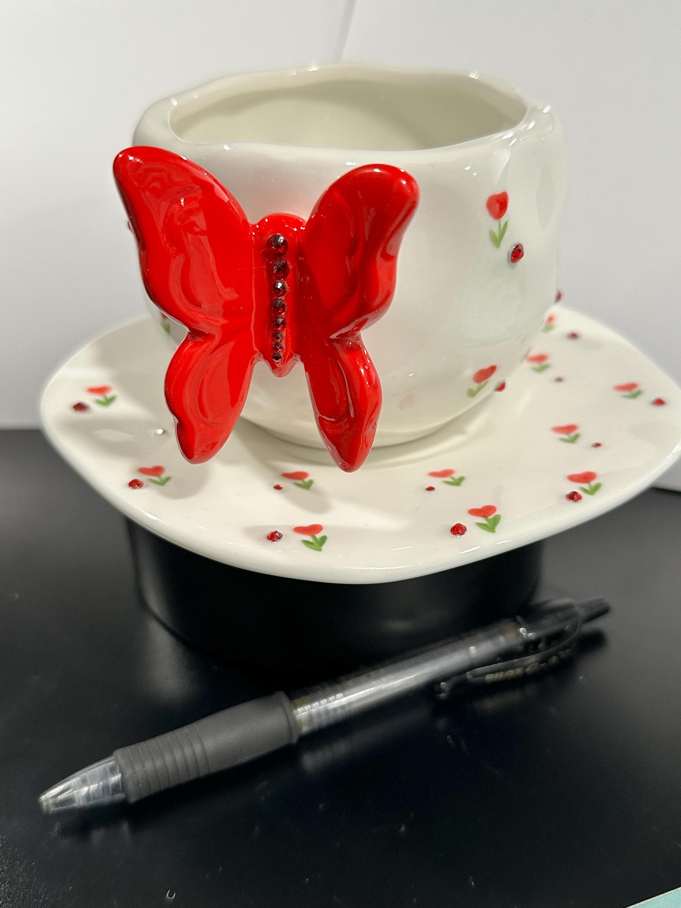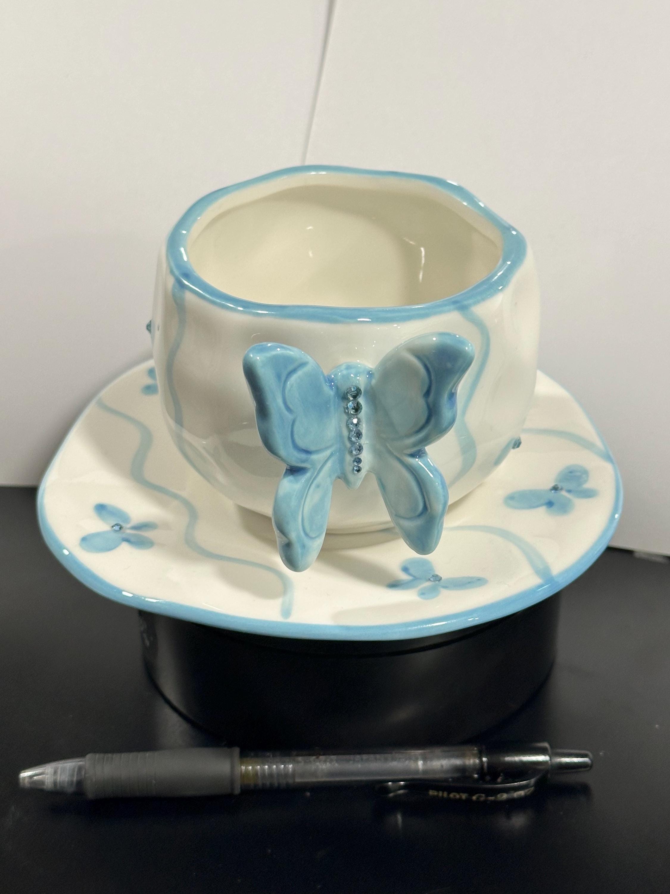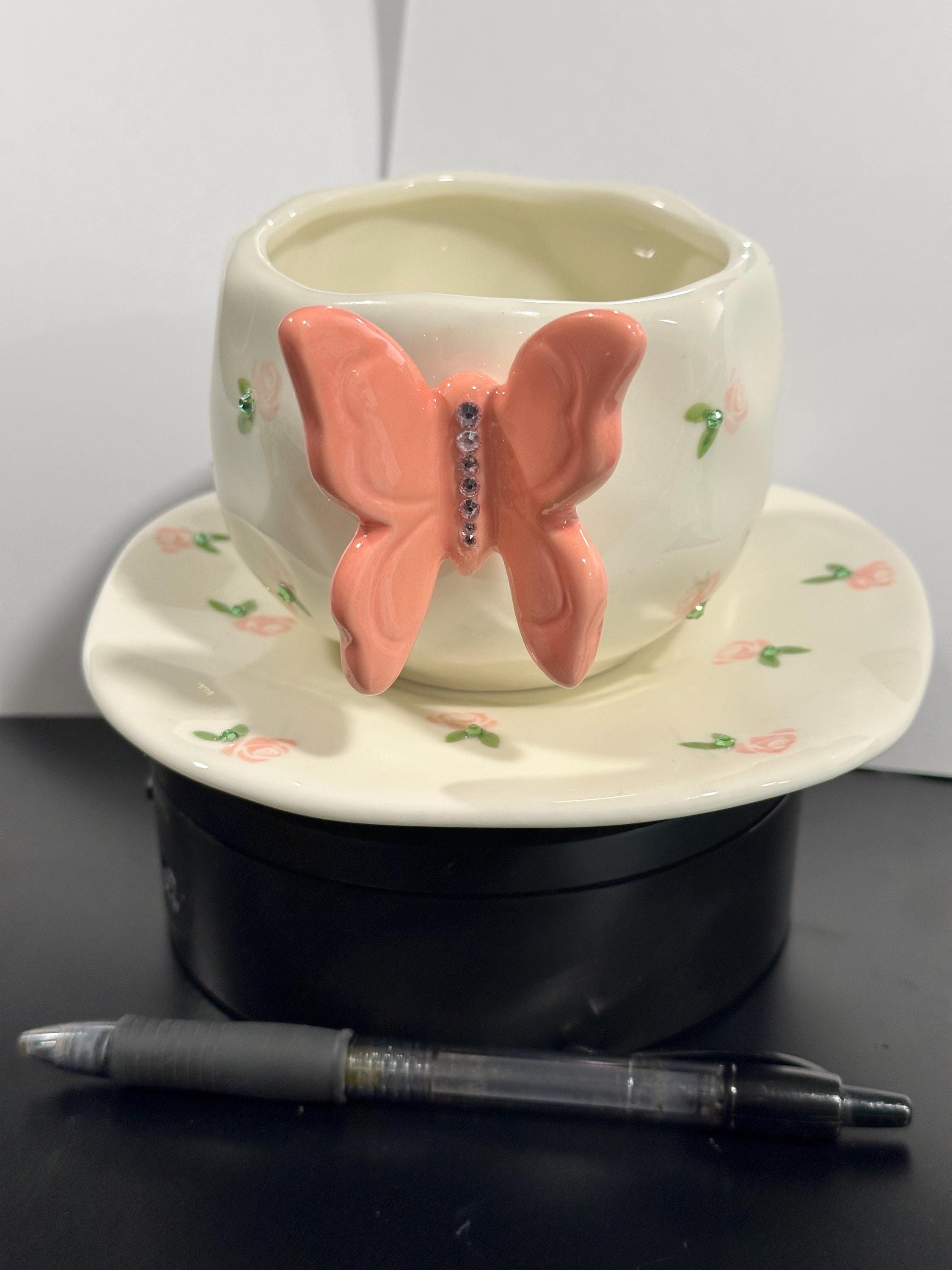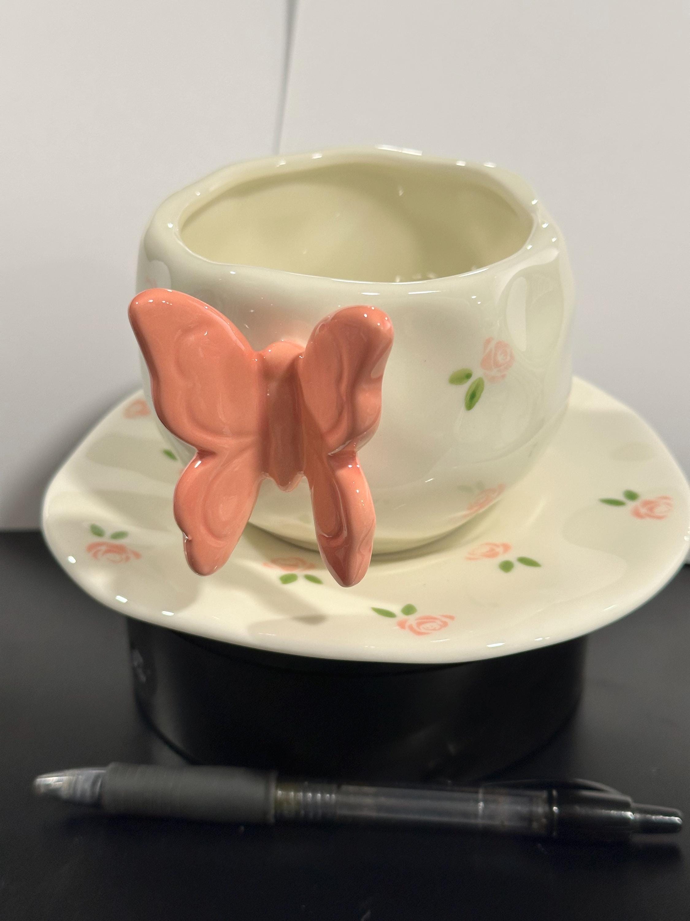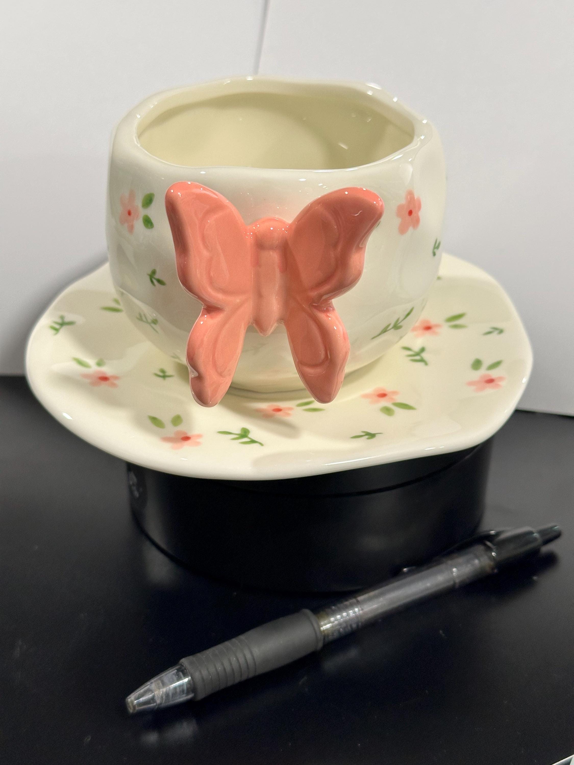 Elevate your tea and coffee moments with this charming Handcrafted 3D Butterfly Ceramic Cup and Saucer Set. Each piece is lovingly handmade and hand-painted, featuring delicate floral details and a cheerful butterfly on the cup as the handle. The saucer is playfully edged with matching flowers, creating a whimsical, cohesive look perfect for everyday use or gifting.